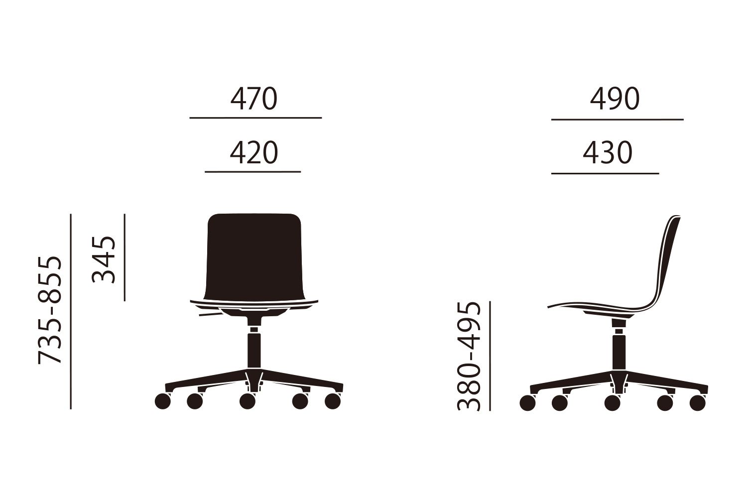 幅47 × 奥行49 × 高さ73.5-85.5cm / 座面の高さ38-49.5cm