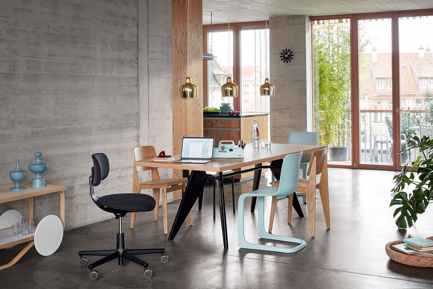 Vitra(ヴィトラ)は店舗什器を製造していたウィリー・フェルバウムによって1950年に創設されたスイスの家具メーカーです。ヴィトラは人間工学に基づいた家具作りを研究し、その確かな技術はオフィス家具のみならず、ホームユース家具やインテリアアクセサリーにも反映されています。ジョージ・ネルソンの「ウォール クロック」やジャン・プルーヴェ「スタンダード」、イサム・ノグチ「コーヒー テーブル」などの名作を復刻し、またジャスパー・モリソンやロナン&エルワン・ブルレックなど、現代のデザイナーたちによる最新家具を揃えています。