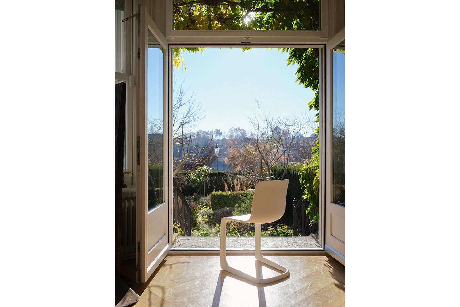 EVO-C(エヴォック)は、人間工学に基づいた快適性と、視覚的な軽快さを兼ね備えています。座る人の姿勢に合わせて、シートとバックレストがしなり柔らかくサポートすることで、快適な座り心地を実現しています。荷重は、背もたれから座面、座面から脚部へと継ぎ目のない一体構造を伝い、中空のチューブ状脚部によって支えられます。