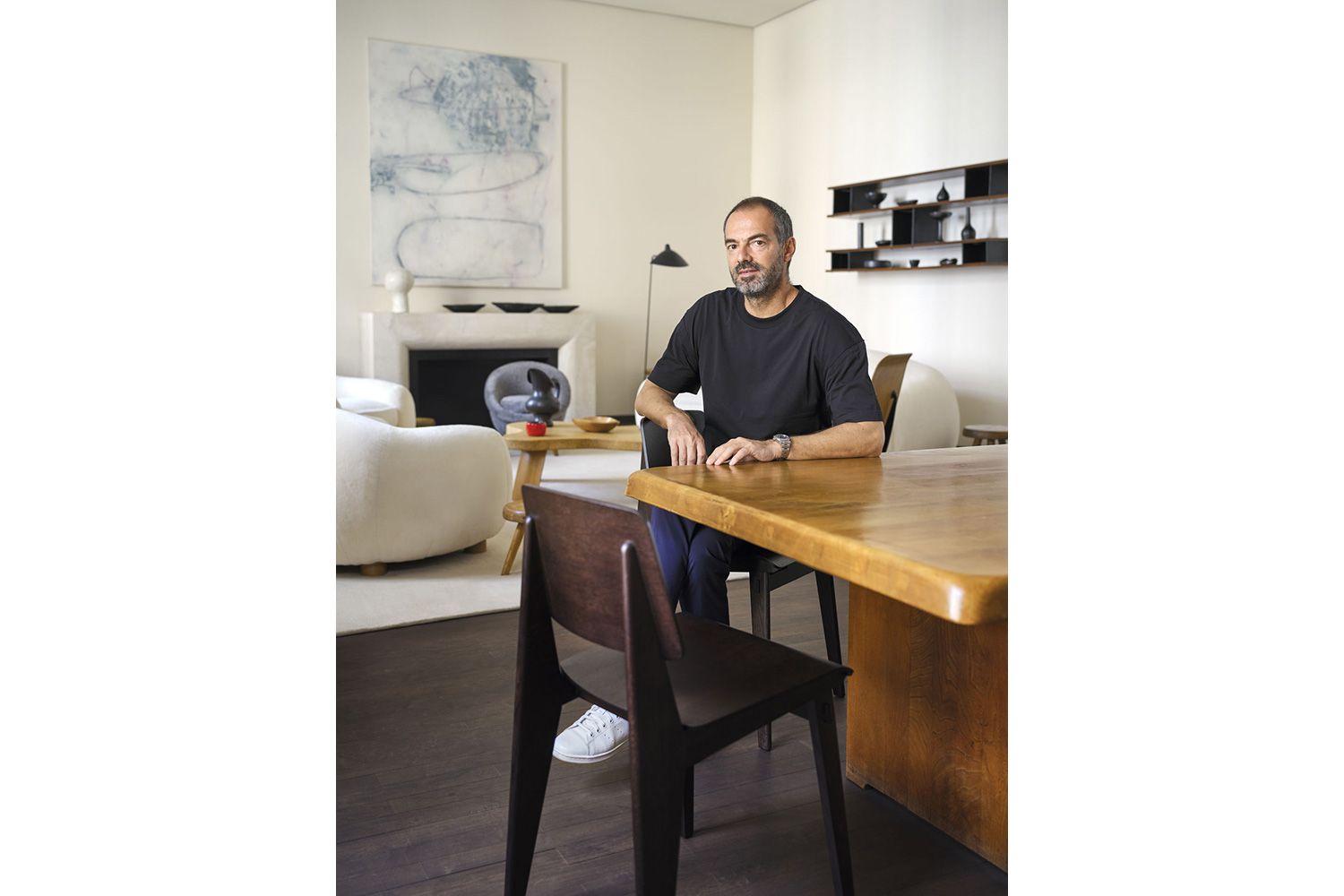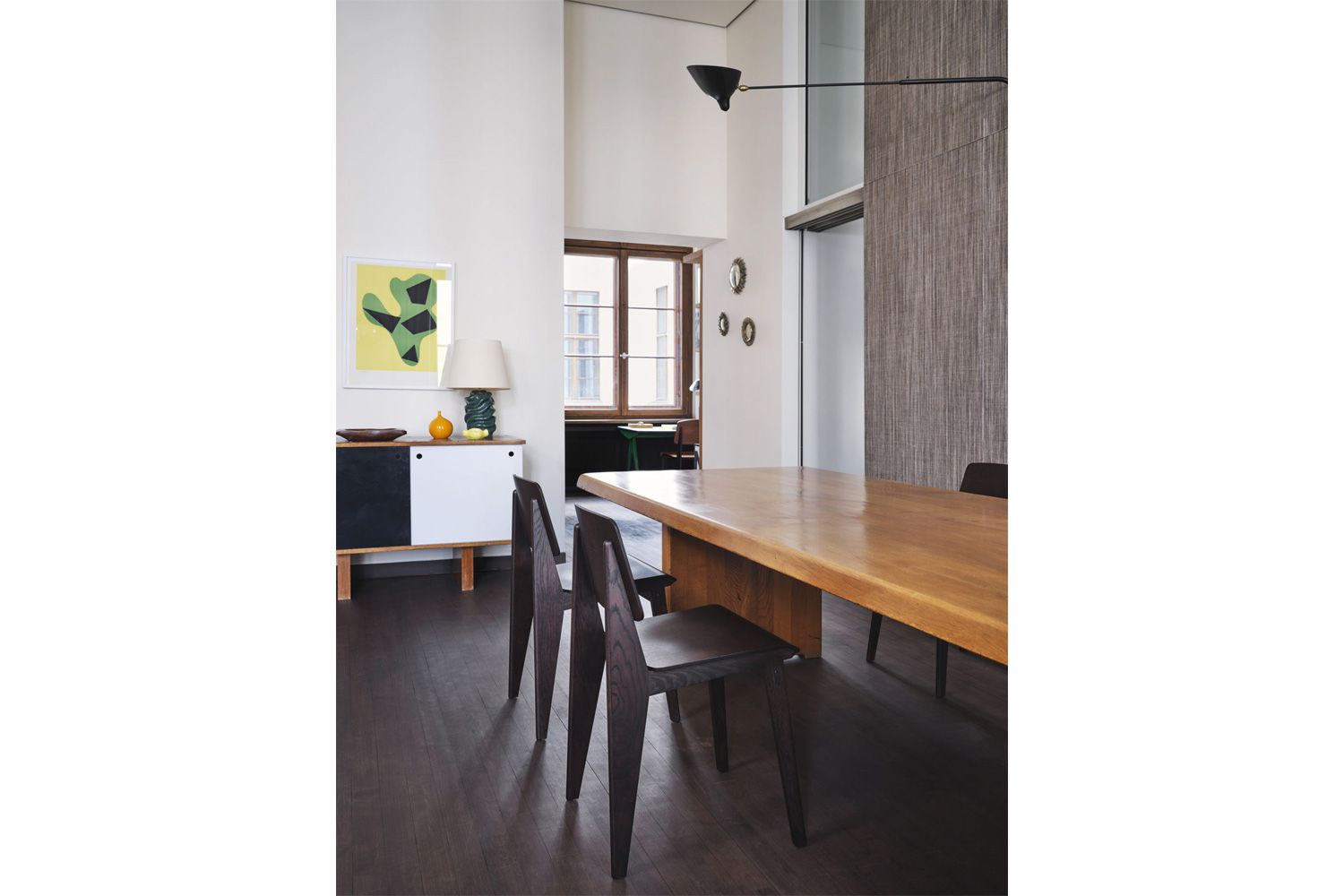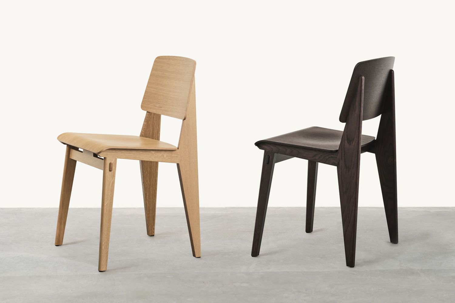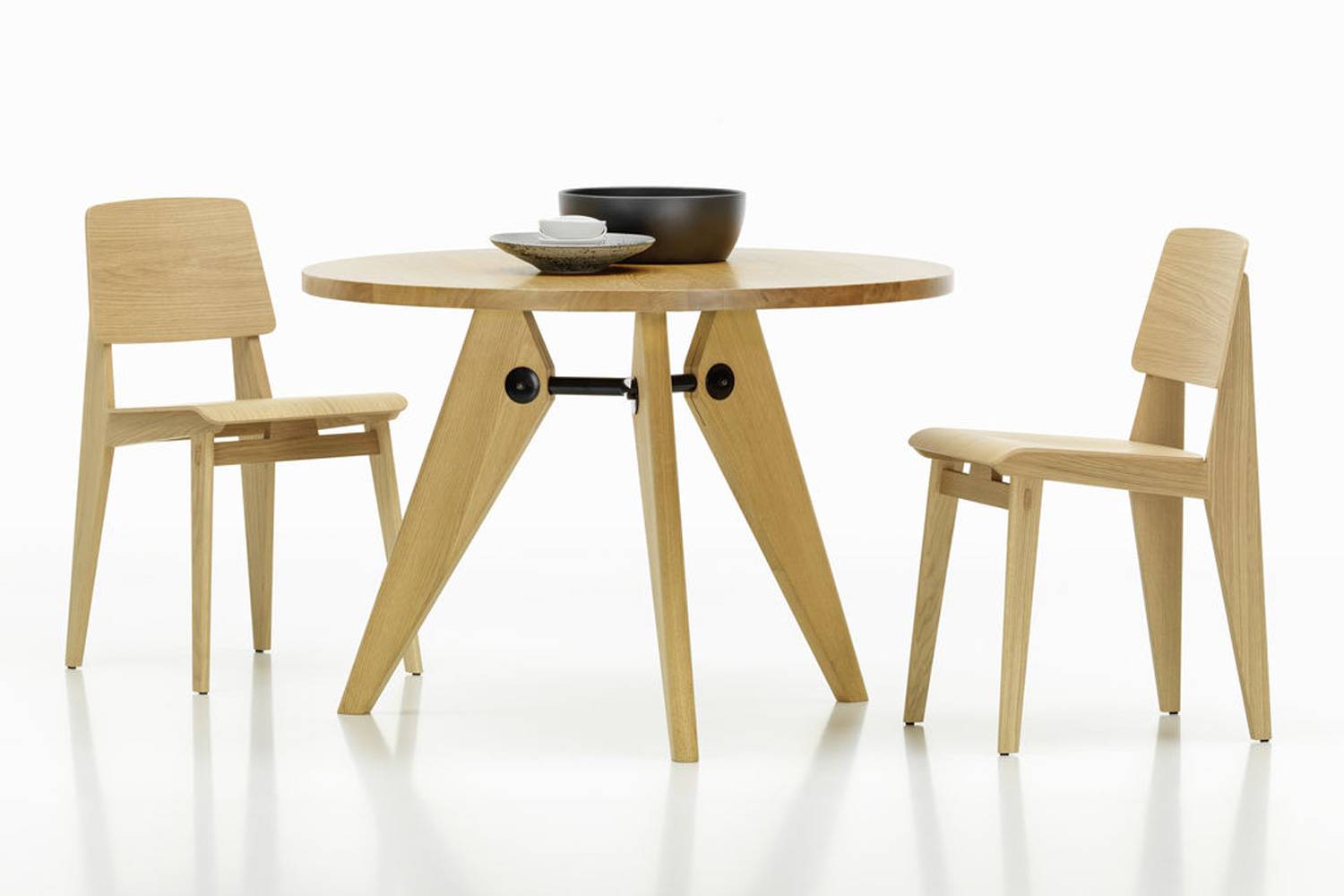 ナチュラルオークとダークオークの2色展開。クロアチア産の無垢材とアメリカ産のプライウッドを使用しています。 プルーヴェ特有の構造美と、木の温かみが生活空間に馴染みやすい雰囲気を与えています。
