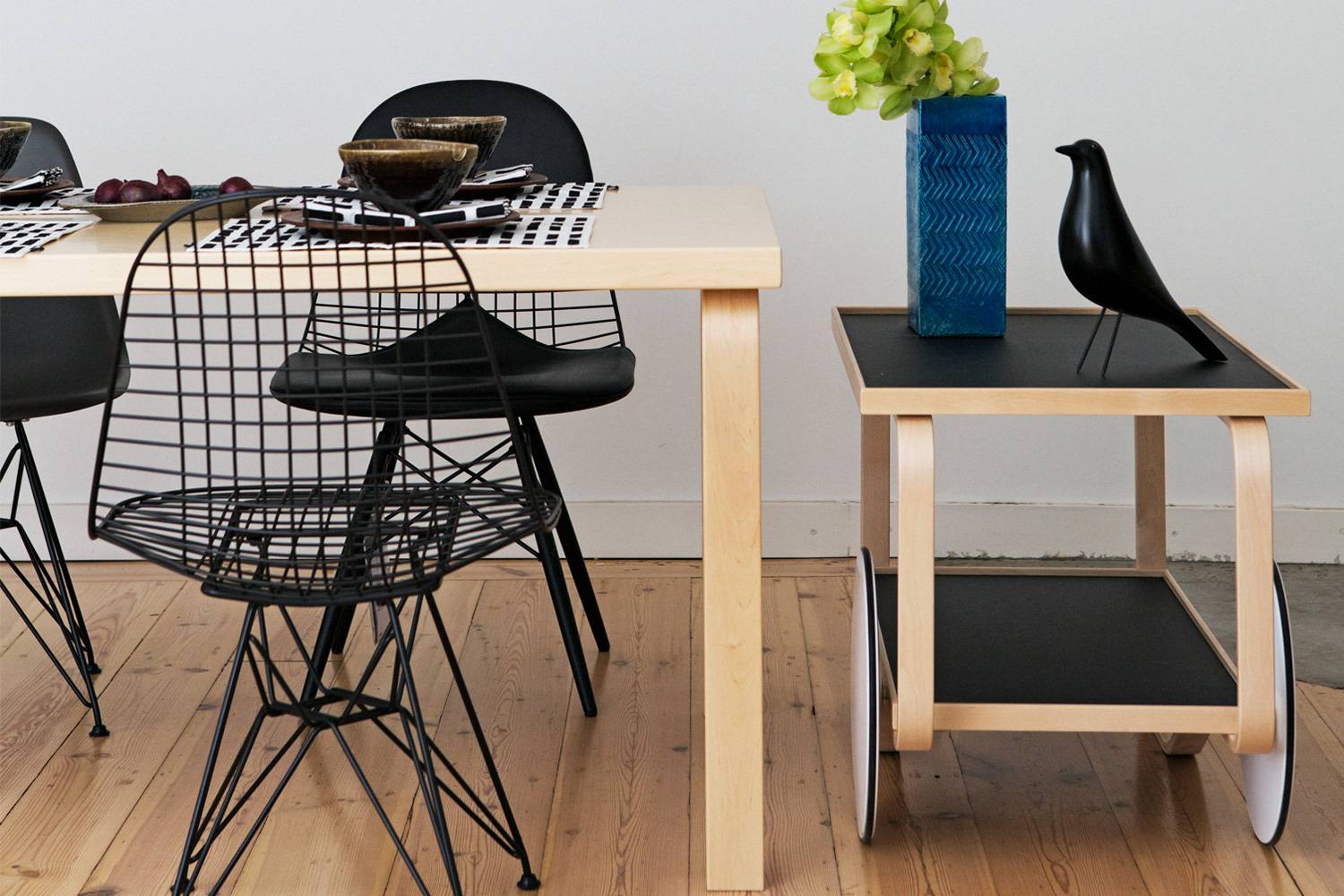 ダイニングテーブル、働くためのデスク、子ども達のプレイルームに、目的に合わせて使うことができる無限の可能性をたたえながらも、どこにあっても独自の存在感を放ちます。 アルヴァ・アアルトが生み出した多彩な家具シリーズに貫かれる哲学の通り、公共空間から住まいまで使うことができる汎用性を持ち合わせています。