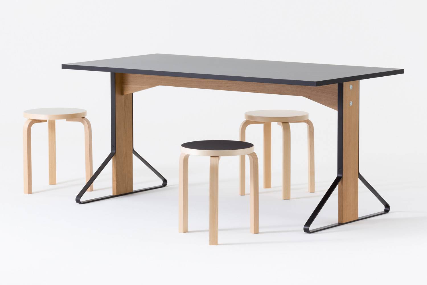 横幅:160cm 天板:ブラックリノリウム / 脚部:ナチュラルラッカー