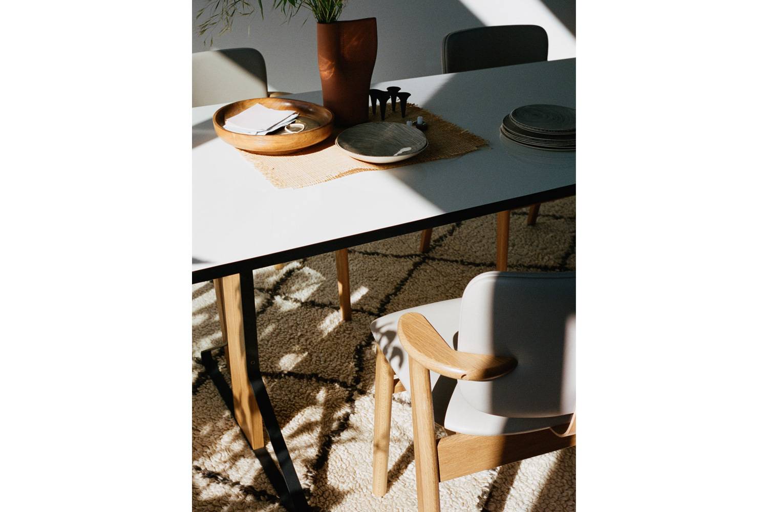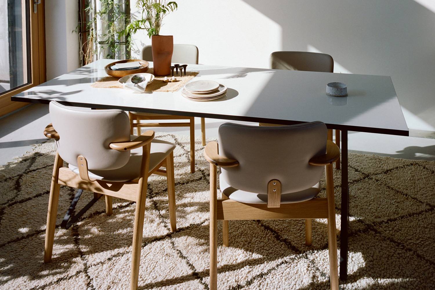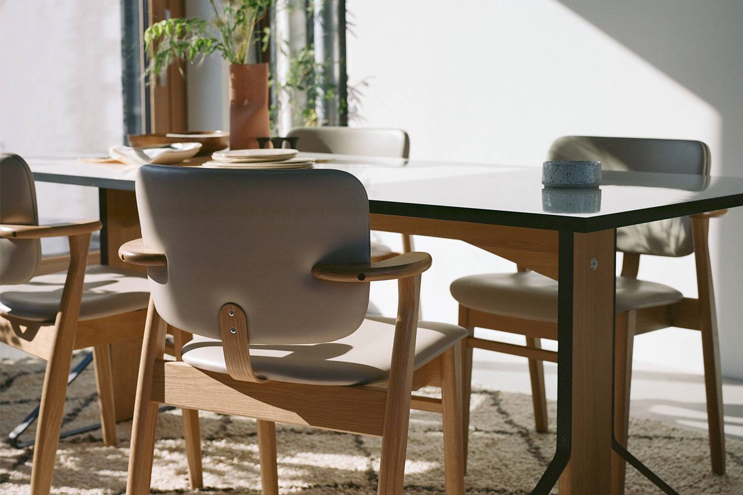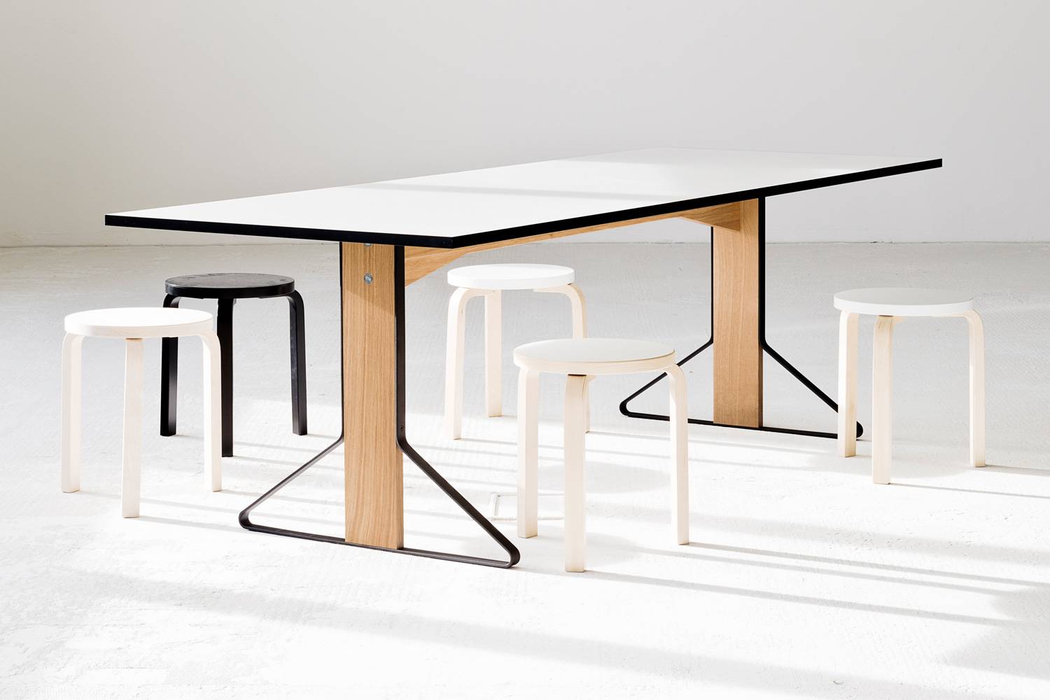 カアリシリーズの長方形テーブルは、そのモダンなデザインと、安定性、汎用性に優れ、公共空間から住まいまで幅広く使うことができます。 また、天板の仕上げは、光沢のあるタイプとマットな質感のバリエーションを揃えています。