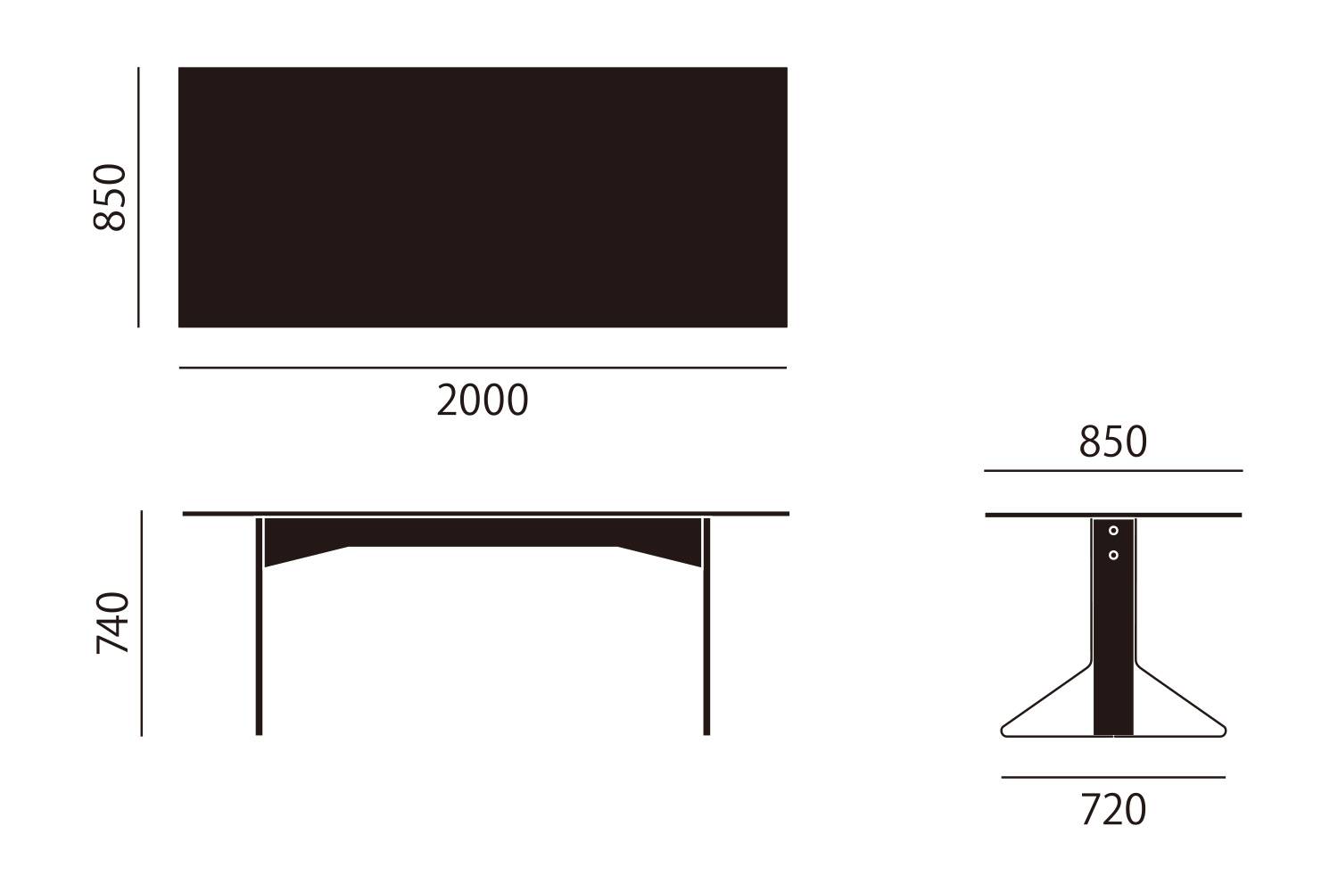 横幅:200cm 天板:ホワイトグロッシー HPL / 脚部:ナチュラルラッカー