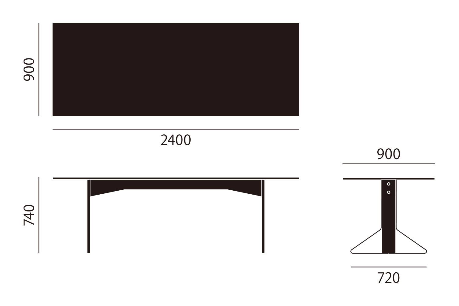 横幅:240cm 天板:ブラックリノリウム / 脚部:ナチュラルラッカー