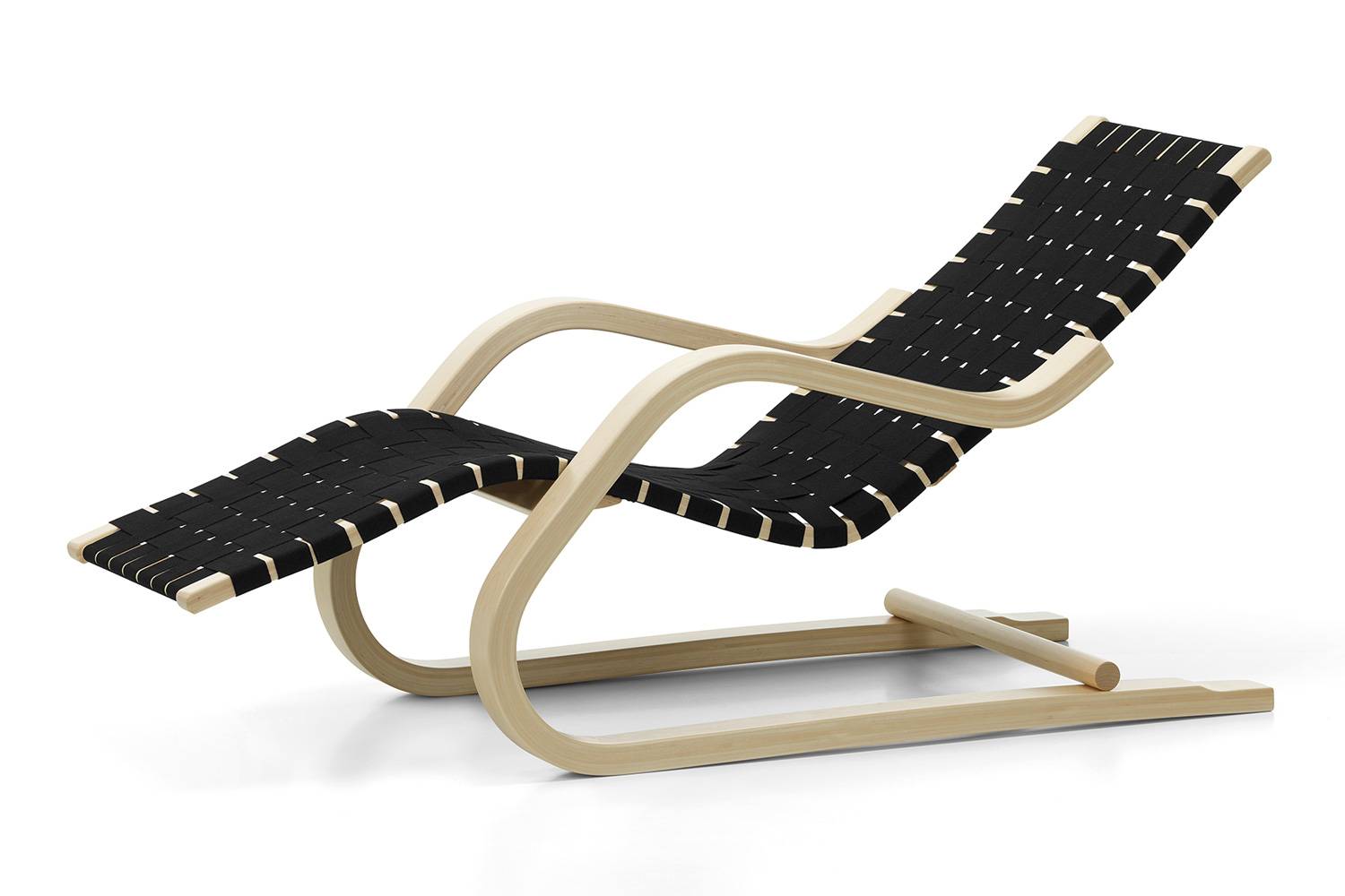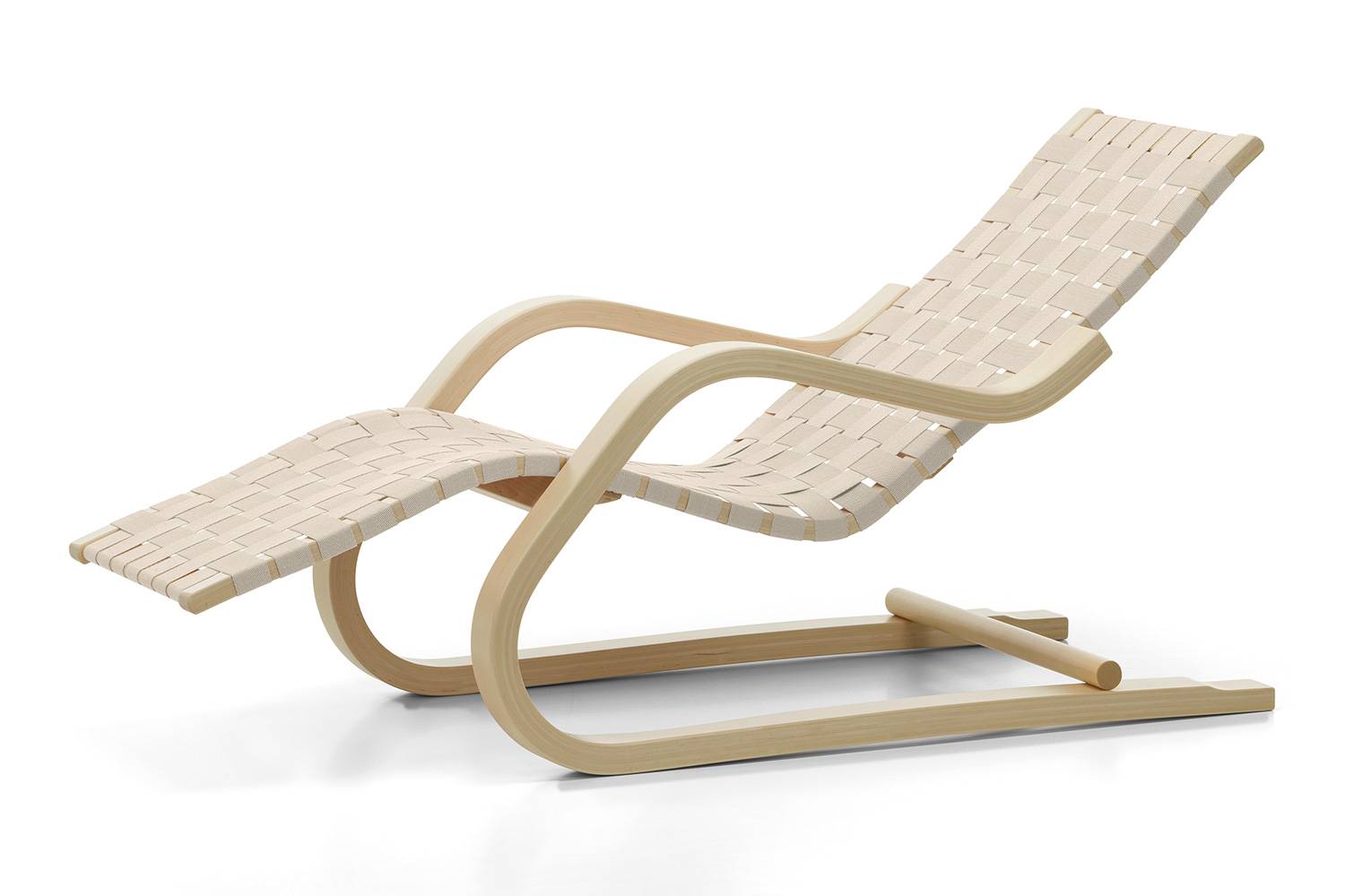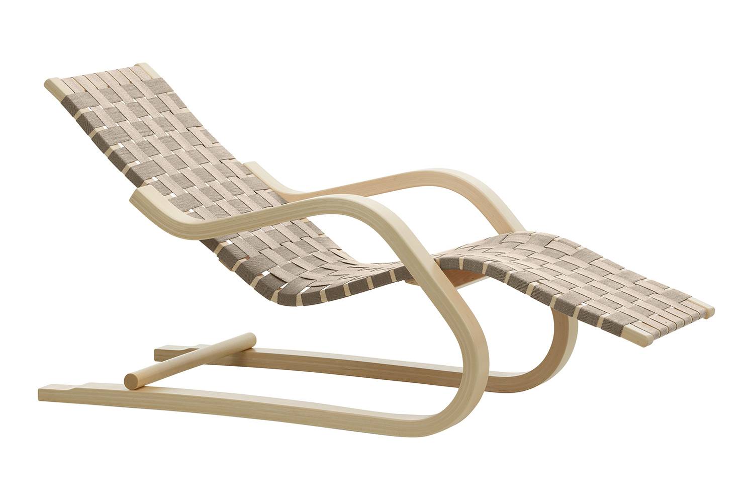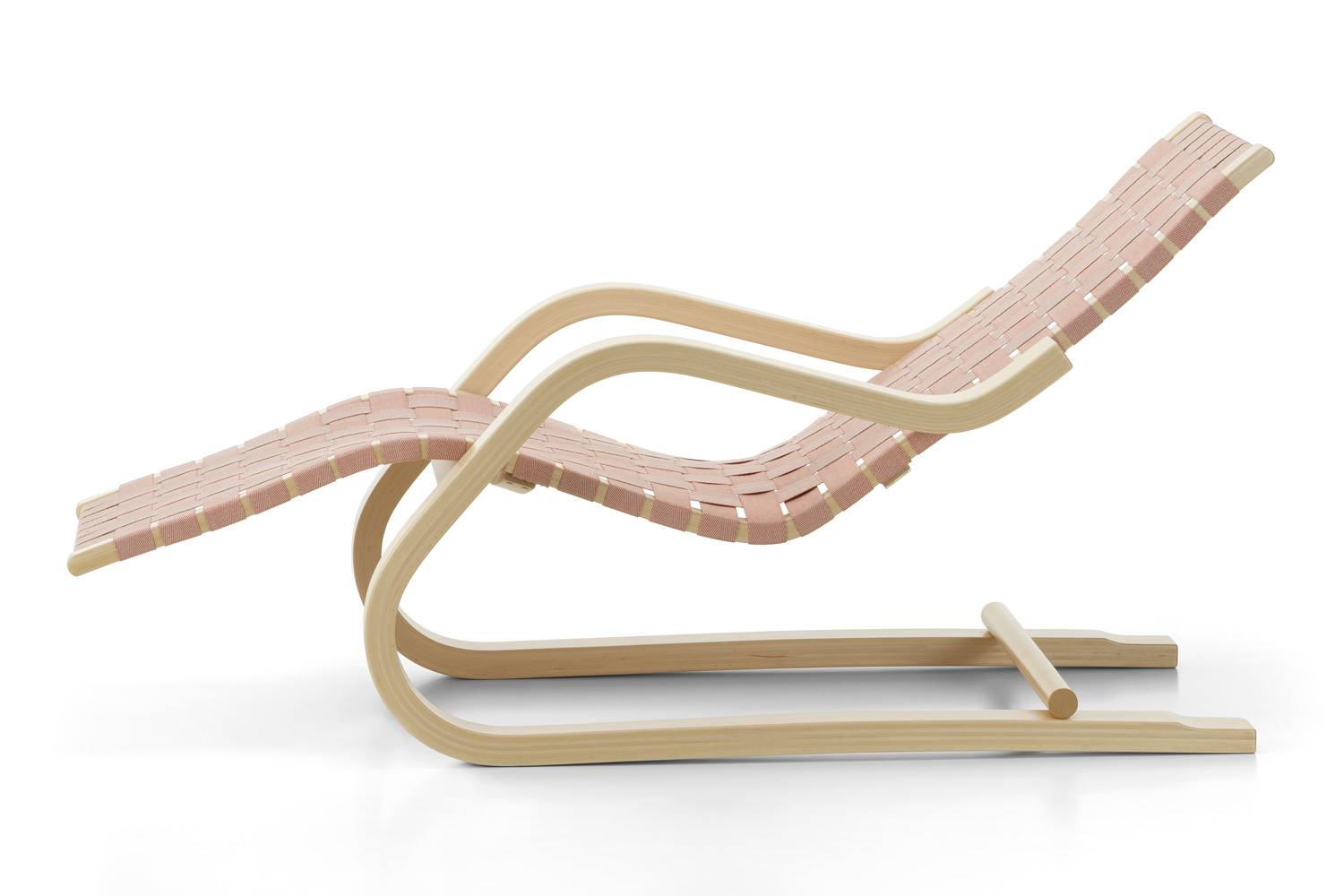 43 ラウンジチェアは、曲げ木の技法の開発とその可能性を追求した末に実を結んだデザインです。 丈夫なバーチ材合板を柔らかに曲げ、さらに滑らかに仕上げる「ラメラ曲げ木」を用いて、安定性と柔軟性を実現しています。