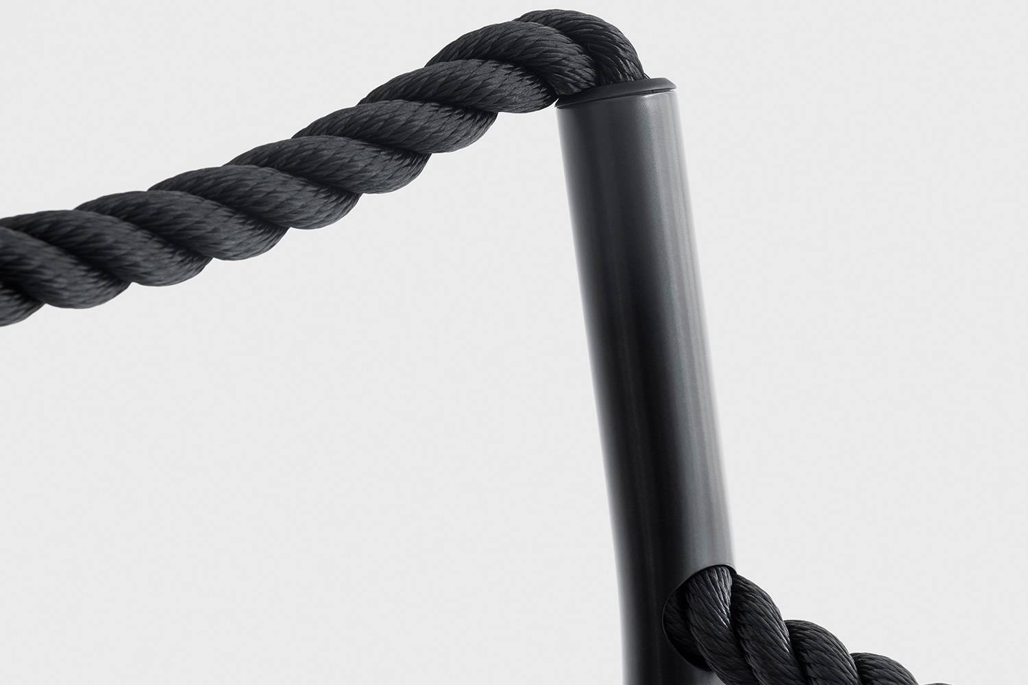 1本のロープが前脚のスチール内部から、バックレッグを通して取り付けられています。 接着材を使用せず、テクノロジーを駆使して硬度のあるチューブとしなやかなロープをつないでいます。