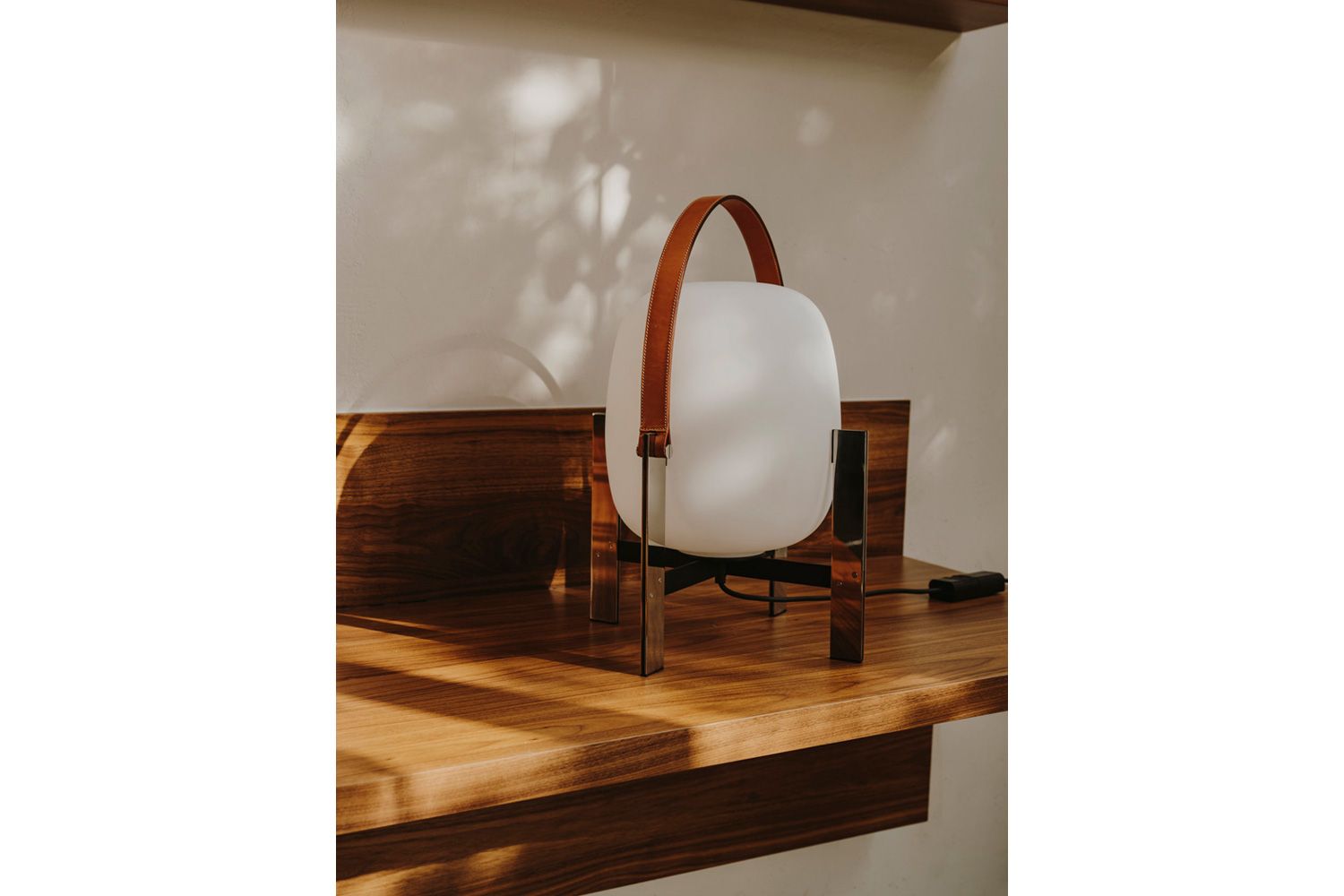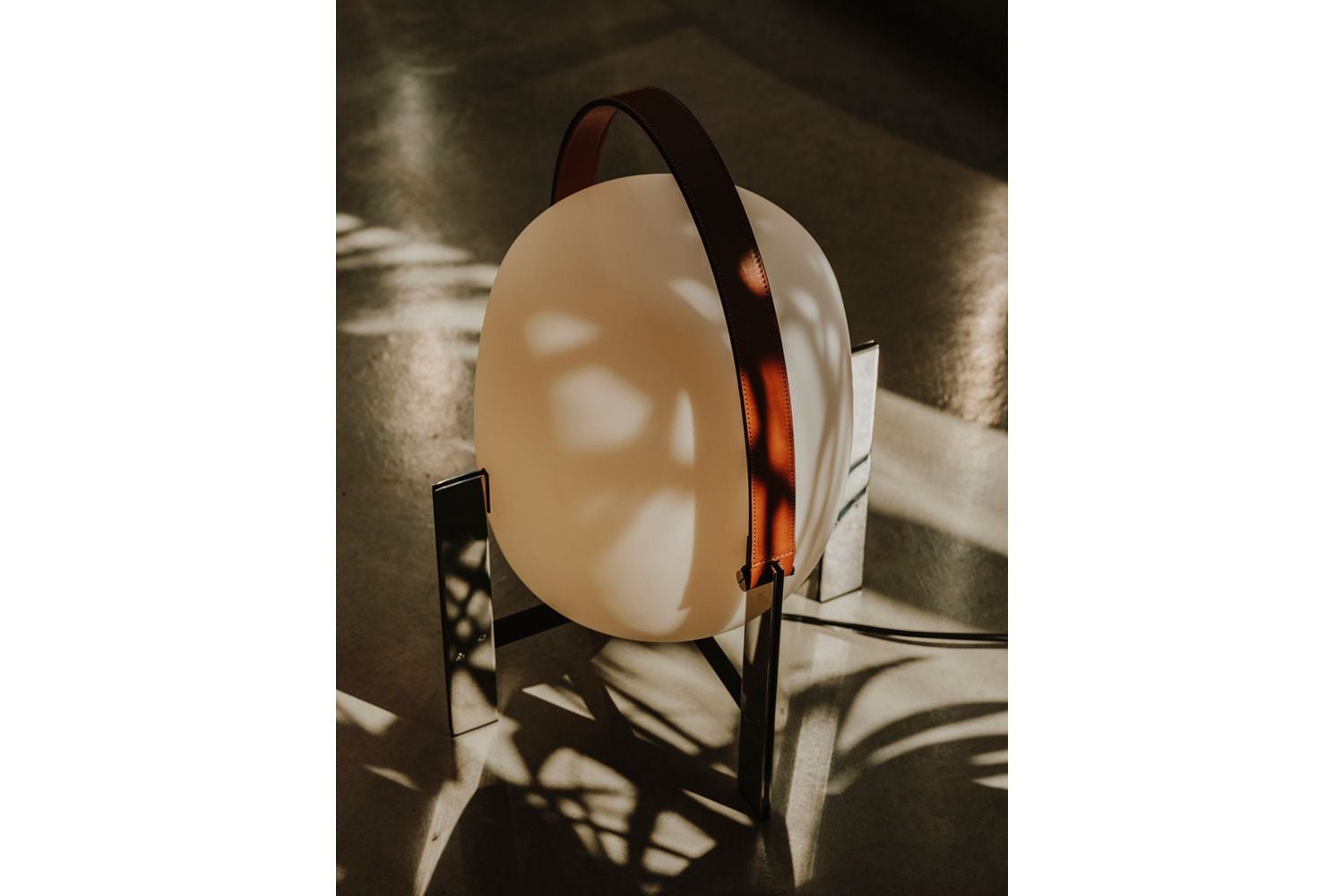 上品なブラウンのレザーハンドルと、オパールガラスシェードを支えるステンレスバーという全く異素材が生み出すコントラストが映えるエレガントな照明です。 力強さと繊細さを併せ持ち、CESTAとまた一線を画した新たな魅力を生むテーブルランプです。レザーハンドルは用途に合わせて取り外し可能です。