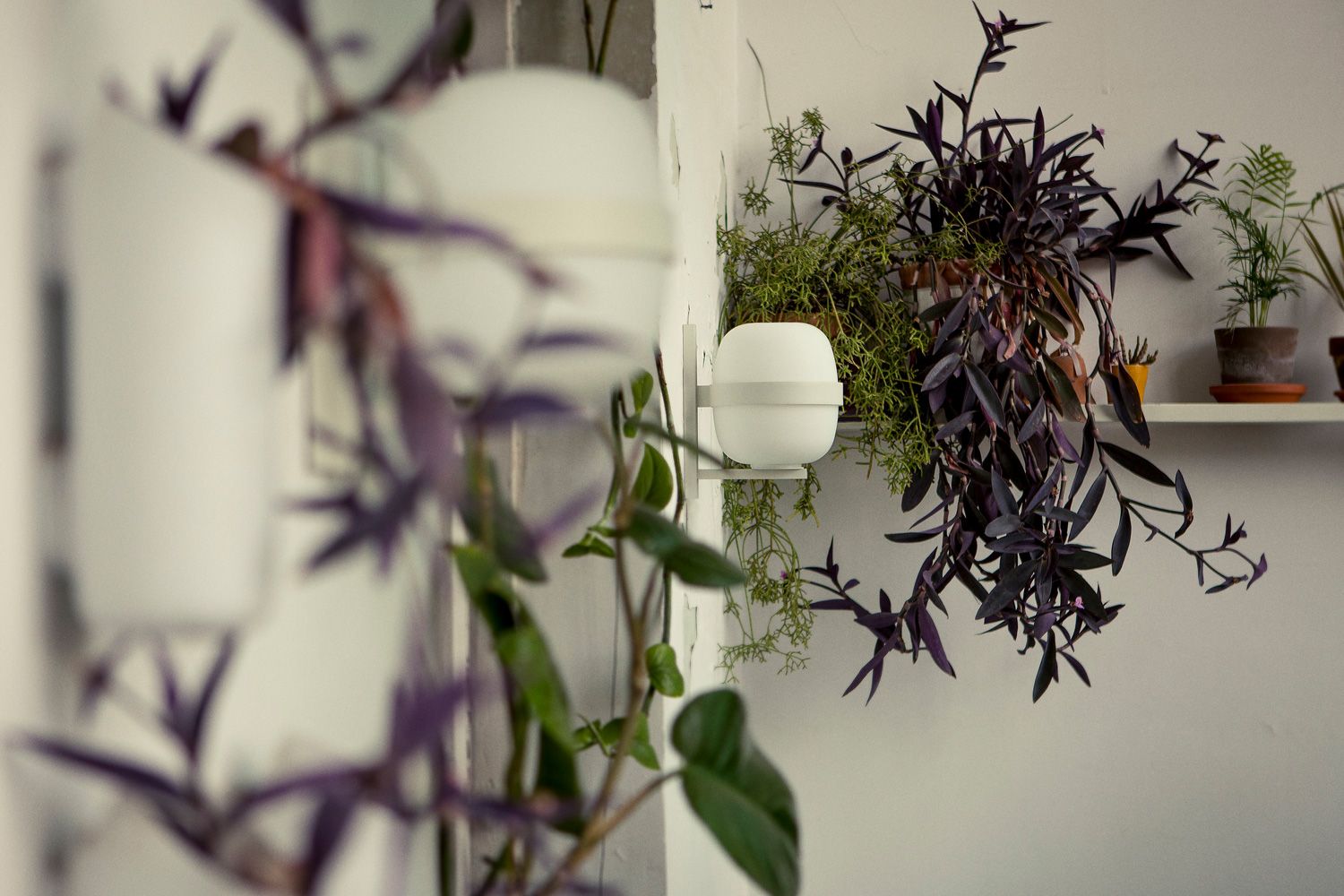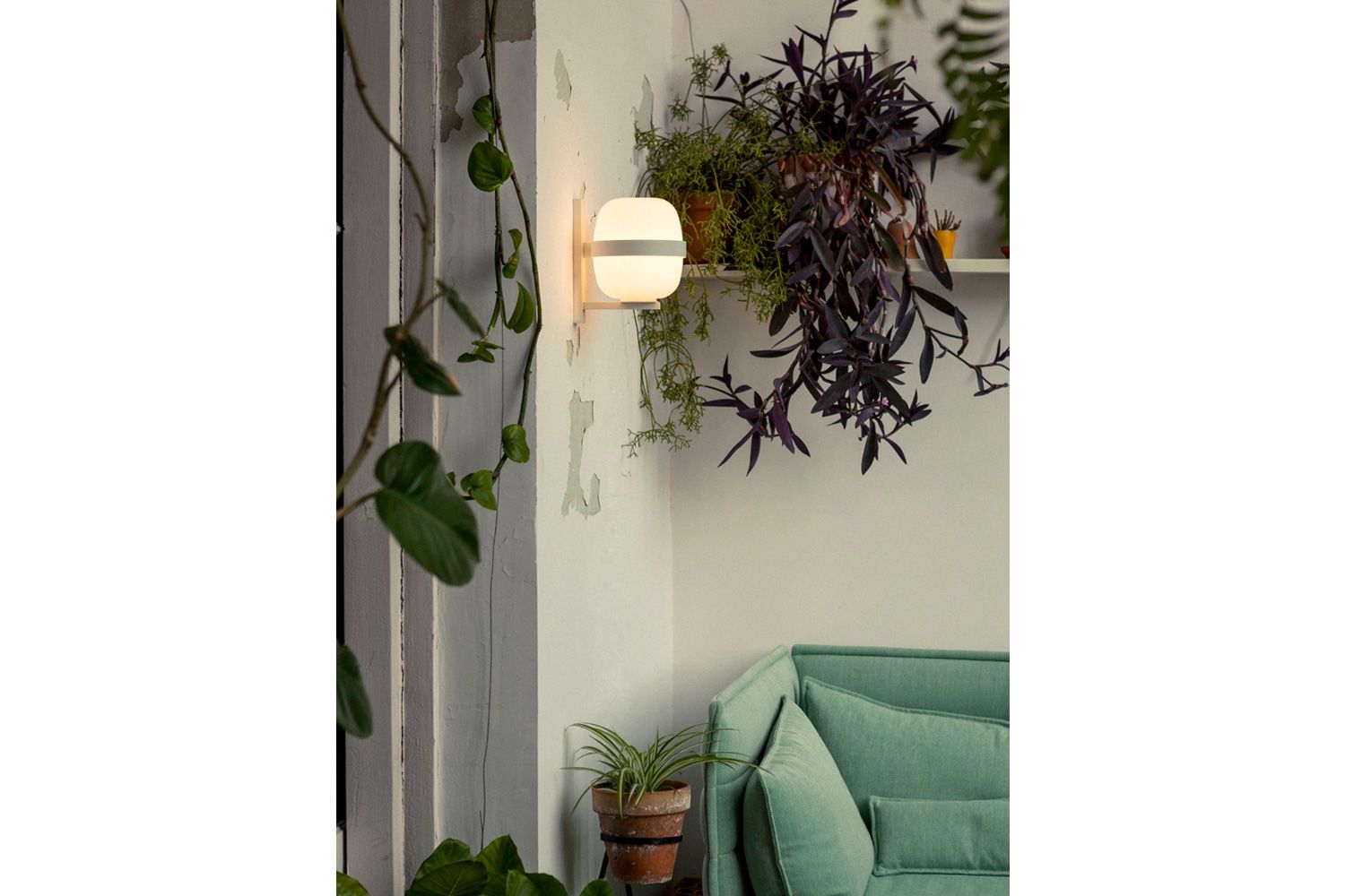 商品名はウォーリーですが、ミゲル・ミラ デザインの CESTA(セスタ)ファミリーのひとつです。 グローブシェードをメタルのフレームが支え、壁付けのグリップにも同じ素材、色を用いて統一感のある照明となっています。マットホワイト、ダークブロンズの2色での展開です。