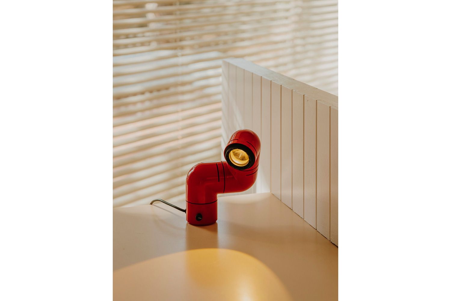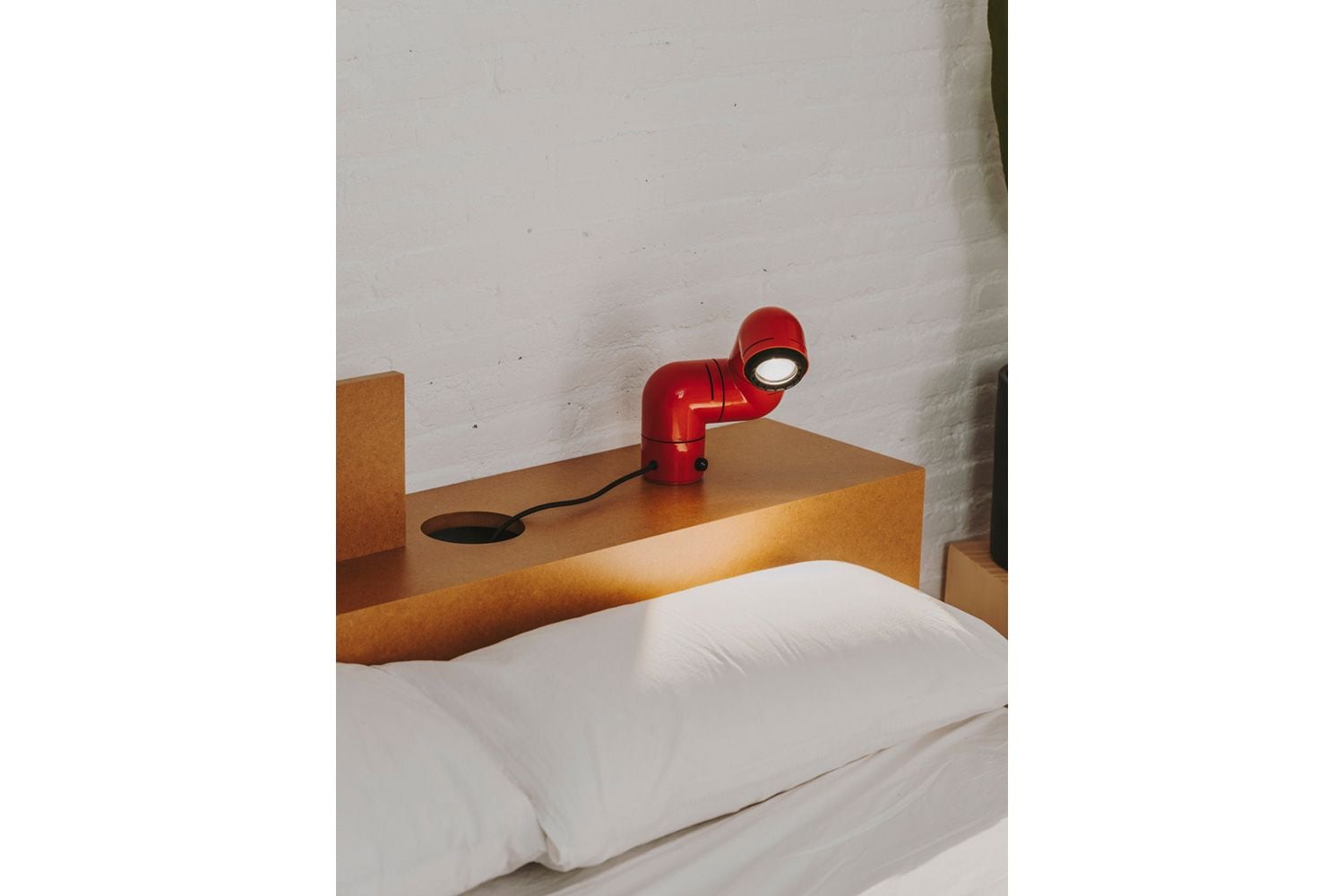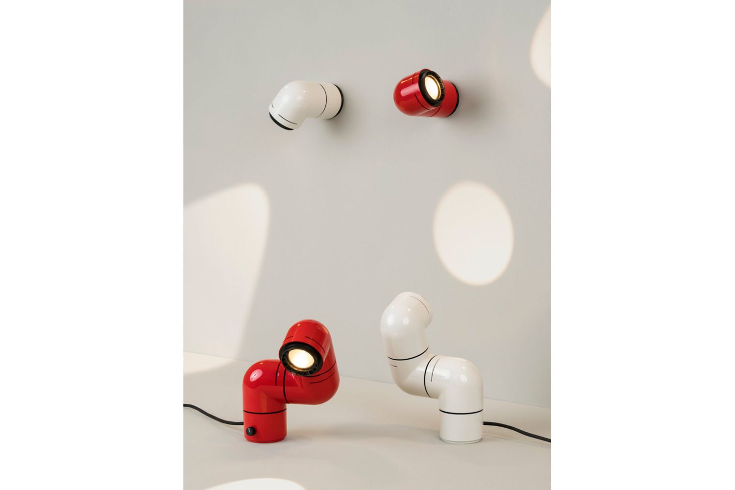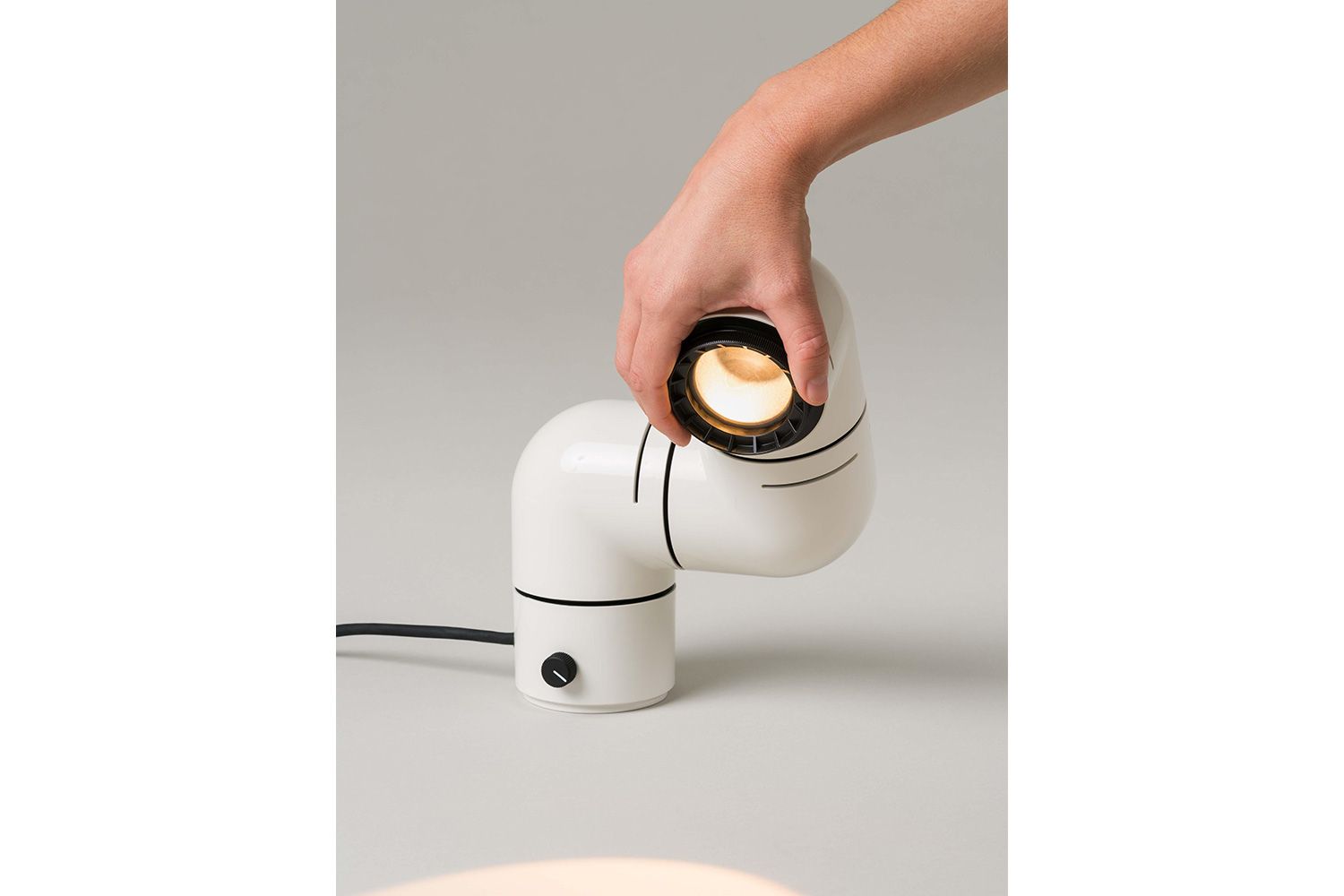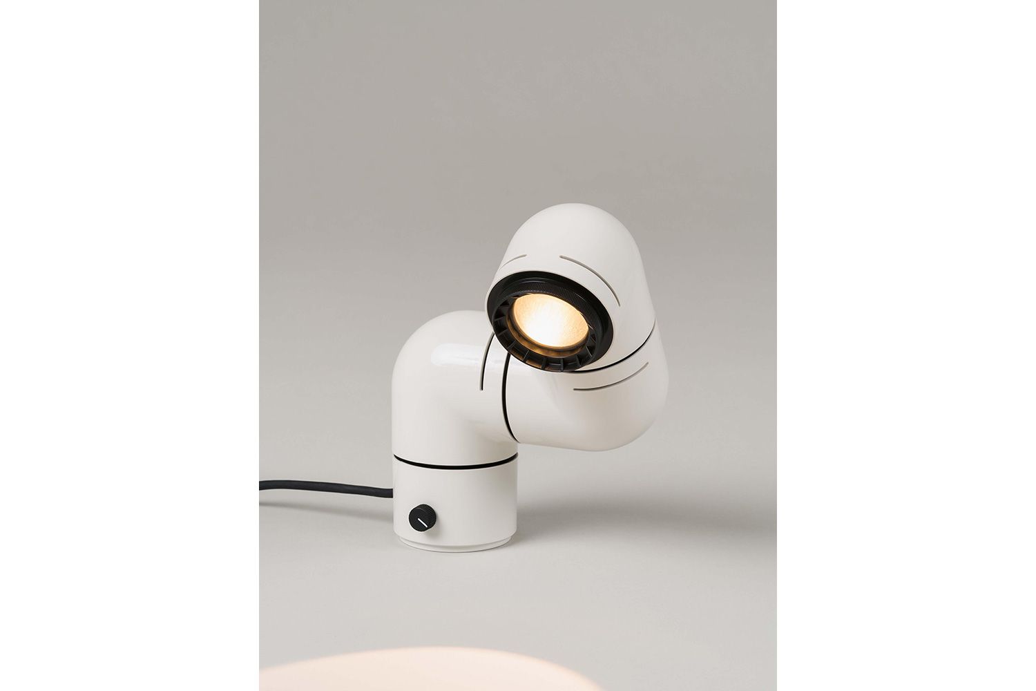 本の中に登場するアルマジロ、妻の睡眠を邪魔しない照明、ふたつが交差し異色の組み合わせでのアイディアが浮かびました。 3つのジョイントでそれぞれ自由に回転させ、シェルフやデスク、ベッドサイドテーブルなどに使えるだけでなく、付属パーツを使えばウォールランプとしても活躍します。 ビーム角が調整可能な集光レンズにより、スポットライトや間接照明としても幅広い用途に対応します。