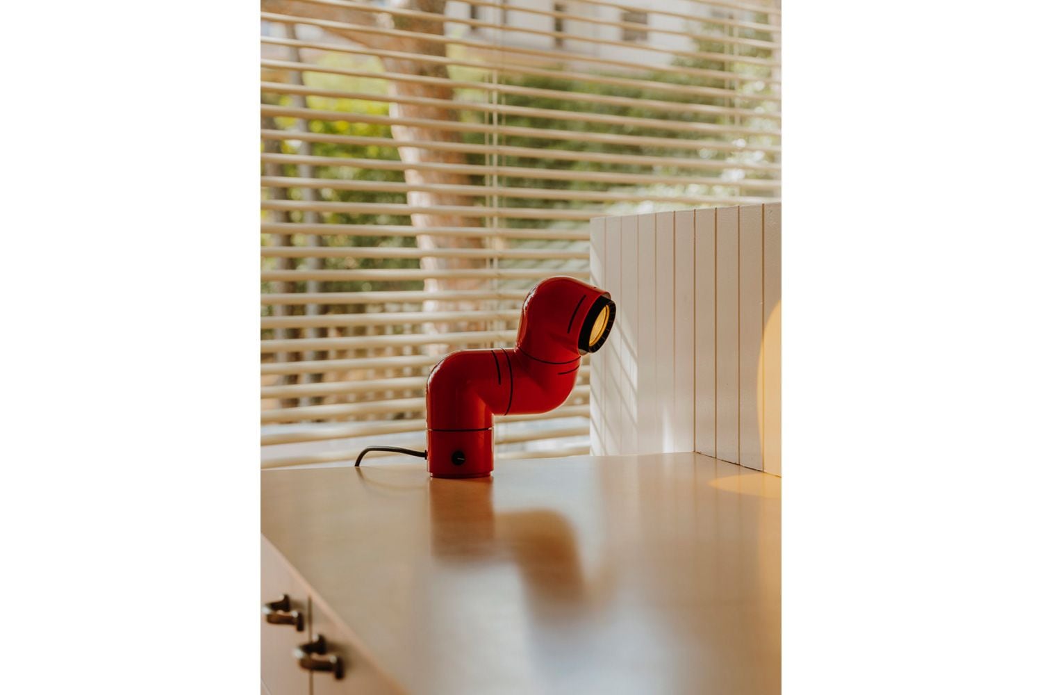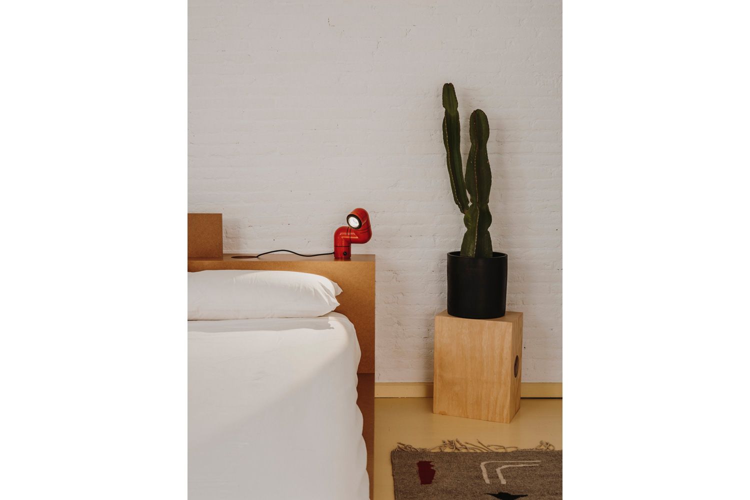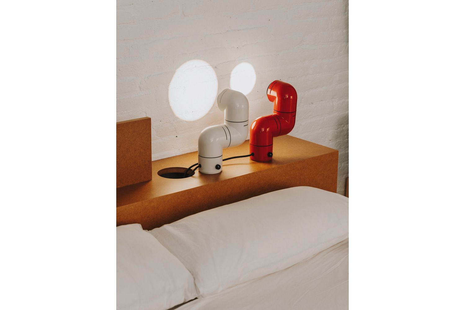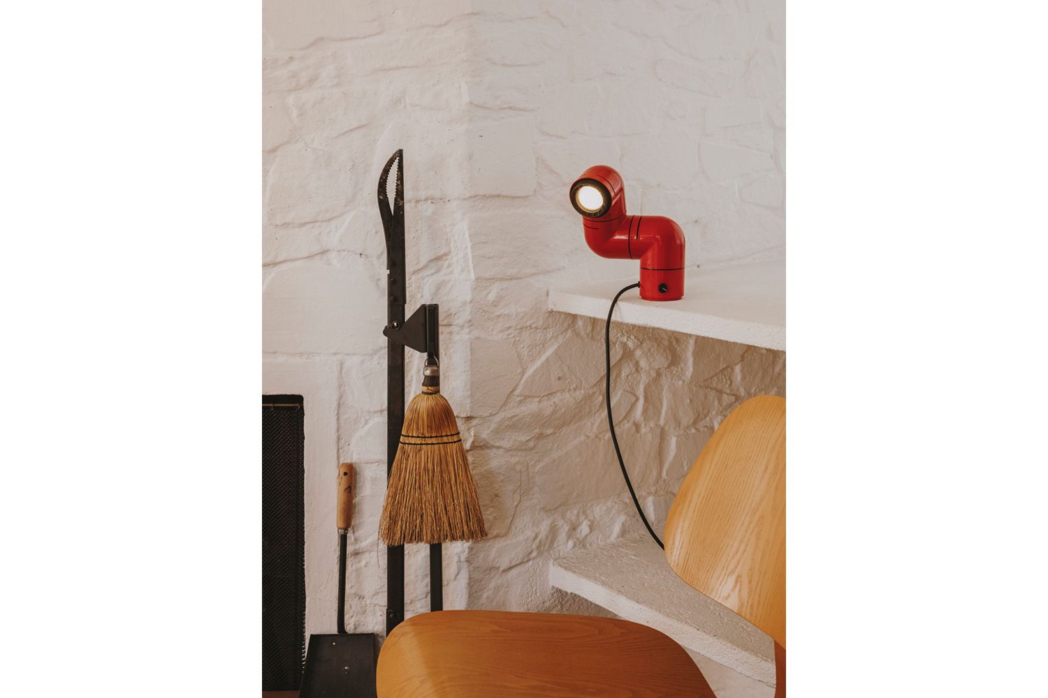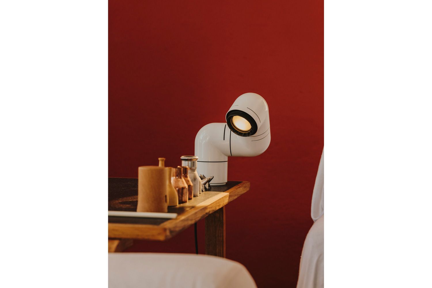 本の中に登場するアルマジロ、妻の睡眠を邪魔しない照明、ふたつが交差し異色の組み合わせでのアイディアが浮かびました。 3つのジョイントでそれぞれ自由に回転させ、シェルフやデスク、ベッドサイドテーブルなどに使えるだけでなく、付属パーツを使えばウォールランプとしても活躍します。 ビーム角が調整可能な集光レンズにより、スポットライトや間接照明としても幅広い用途に対応します。