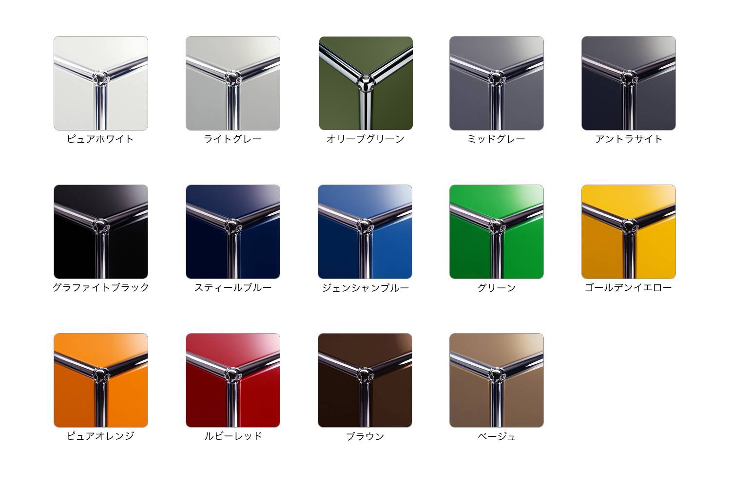 USM(ユーエスエム)は、14色あるパネルとスチールチューブを組み合わせることによって、形やサイズをカスタマイズすることができます。 キャビネットやテレビボード、ワゴン、ローテーブル、ディスプレイ棚など、用途はさまざまです。 引き出しやキャスター、アクセサリー類も豊富で、ホームからオフィスまで、ニーズにマッチしたカスタム家具を作ることができます。 また、組み替えも可能なので、お部屋の模様替や引っ越し時など、生活、環境の変化に応じて形やサイズを変えることができます。 ※専門スタッフによる施工が必要です。