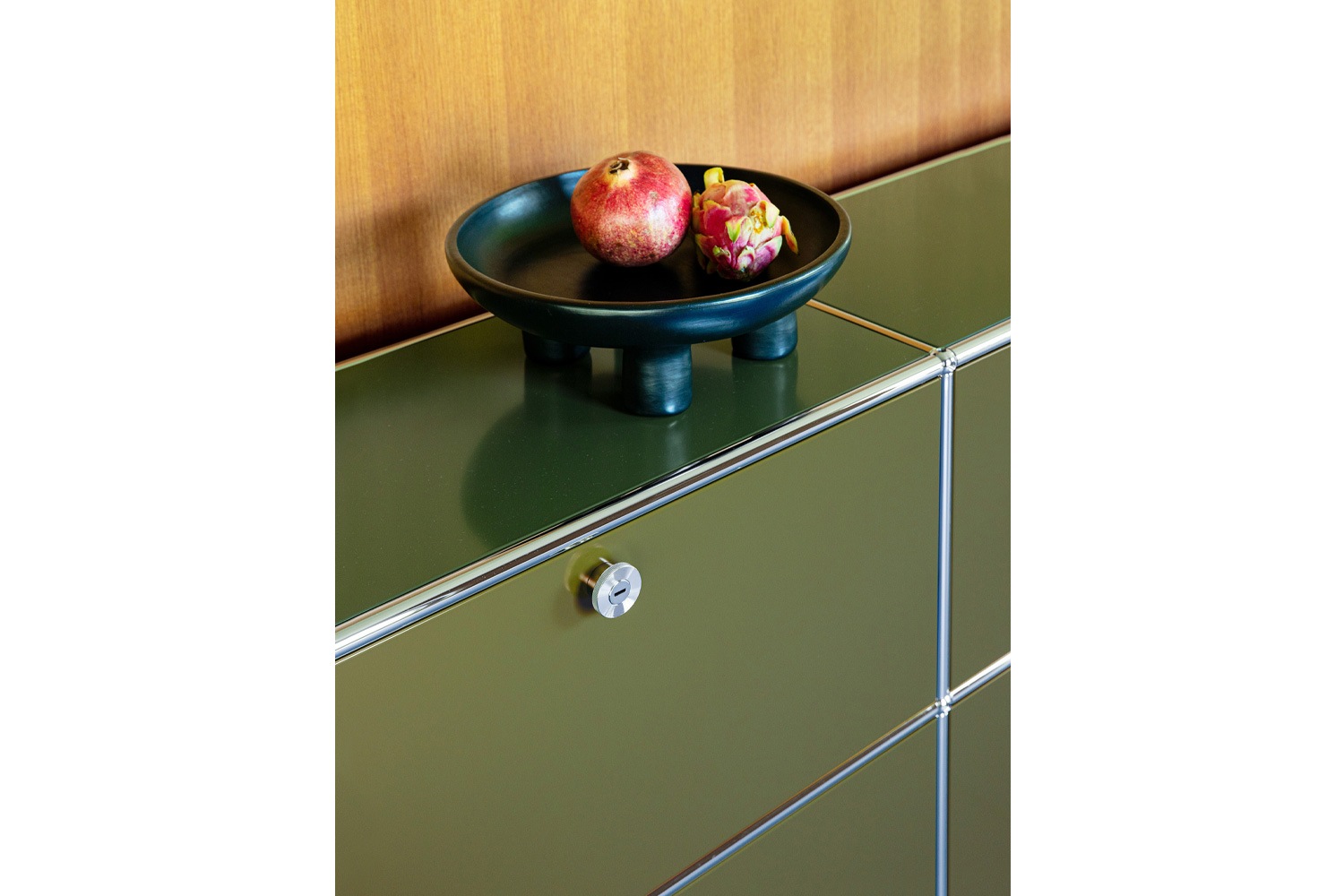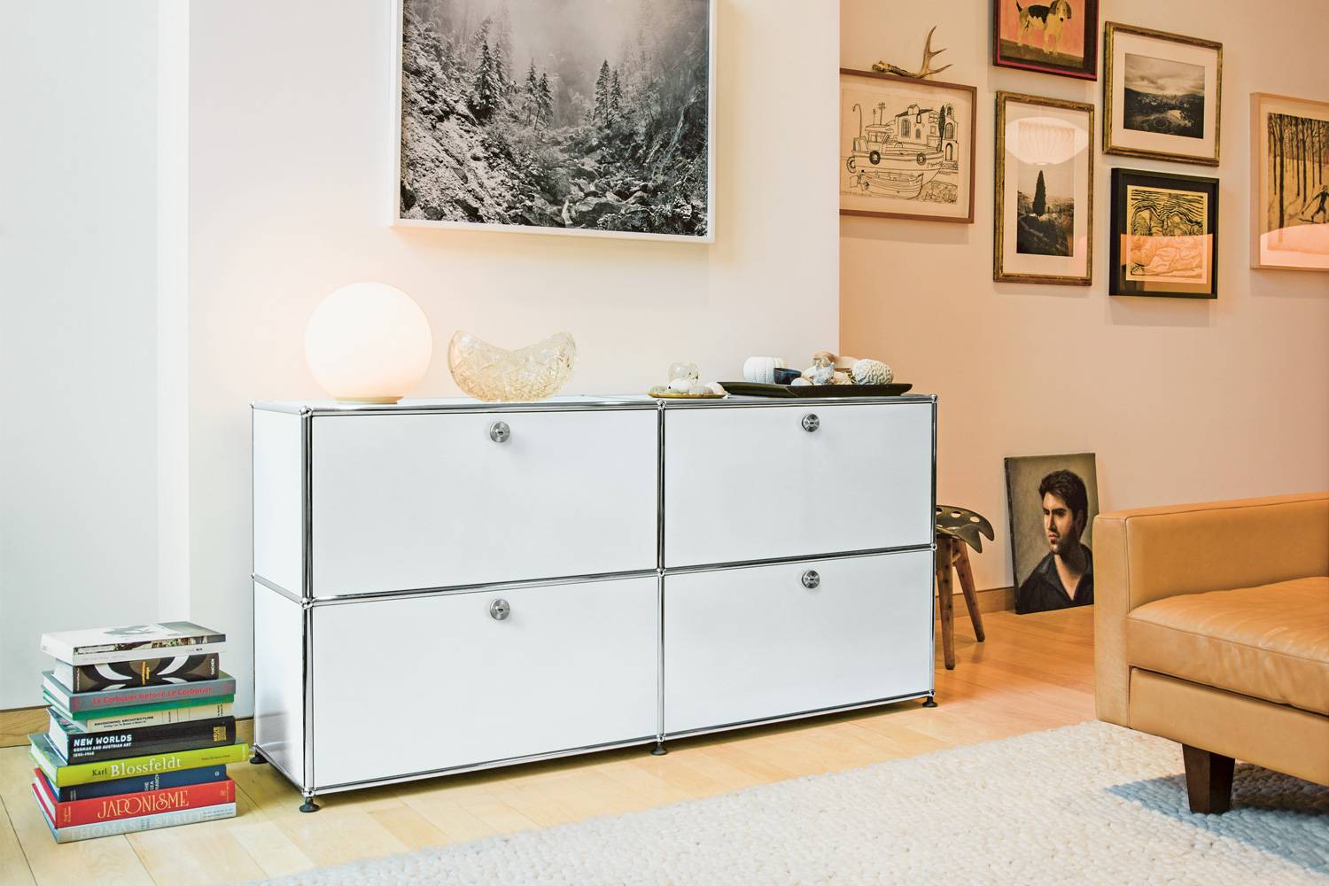 USM HALLER SIDE BOARD JPQS000(USMハラー サイドボード JPQS000)は、4つのドロップダウンドアが付いたサイドボードです。 収納量が多いので、様々なものが収納できます。A4ファイルが横には3つ分並べておくことができ、縦にも収納することができます。 リビングルームやワークスペースなど幅広い場所で活躍する、使い勝手のいいサイズです。