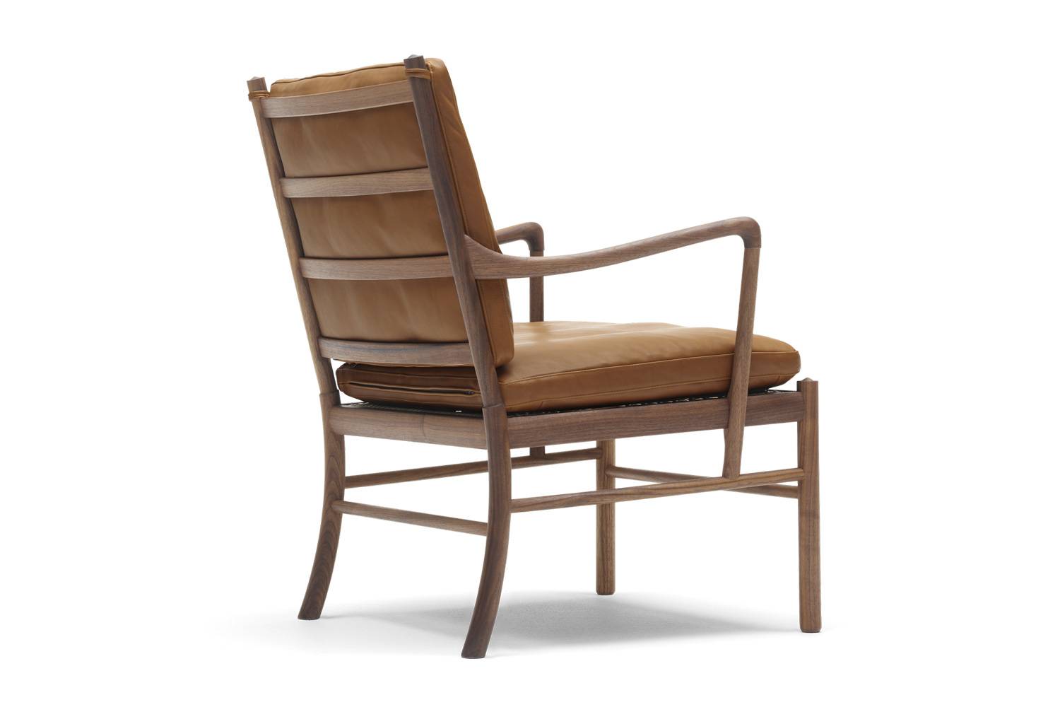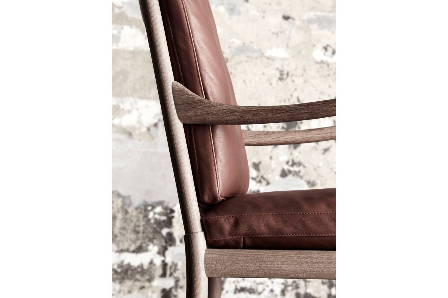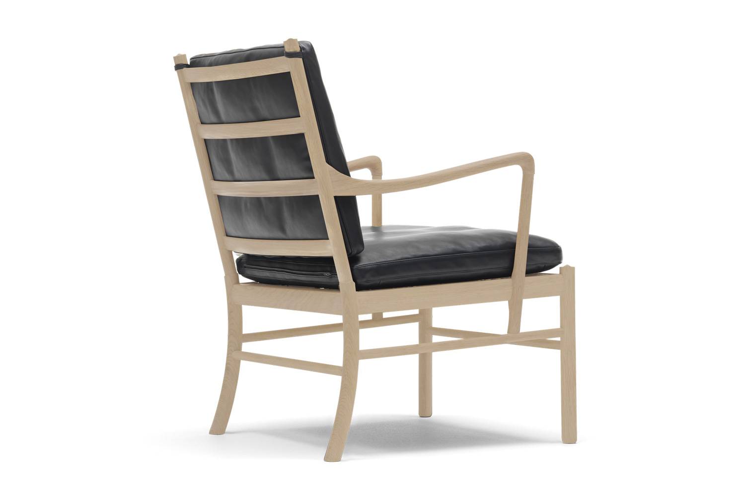 ミニマリスト、機能主義者と評価されるオーレ・ヴァンシャー、そのデザインには、洗練された細いラインが多く見られます。 コロニアルチェアもその一つ。細く優雅なフレームですが、考え抜かれた構造により、優れた強度を創りだしています。 洗練された曲線を描く特徴的なアーム。先端で真下にカーブさせる、ヴァンシャーらしい意匠となっています。 丸棒状の前脚と後ろ脚。後ろ脚を若干カーブさせることによって、椅子に安定性を与え、優雅な傾斜のあるシルエットを創り上げています。