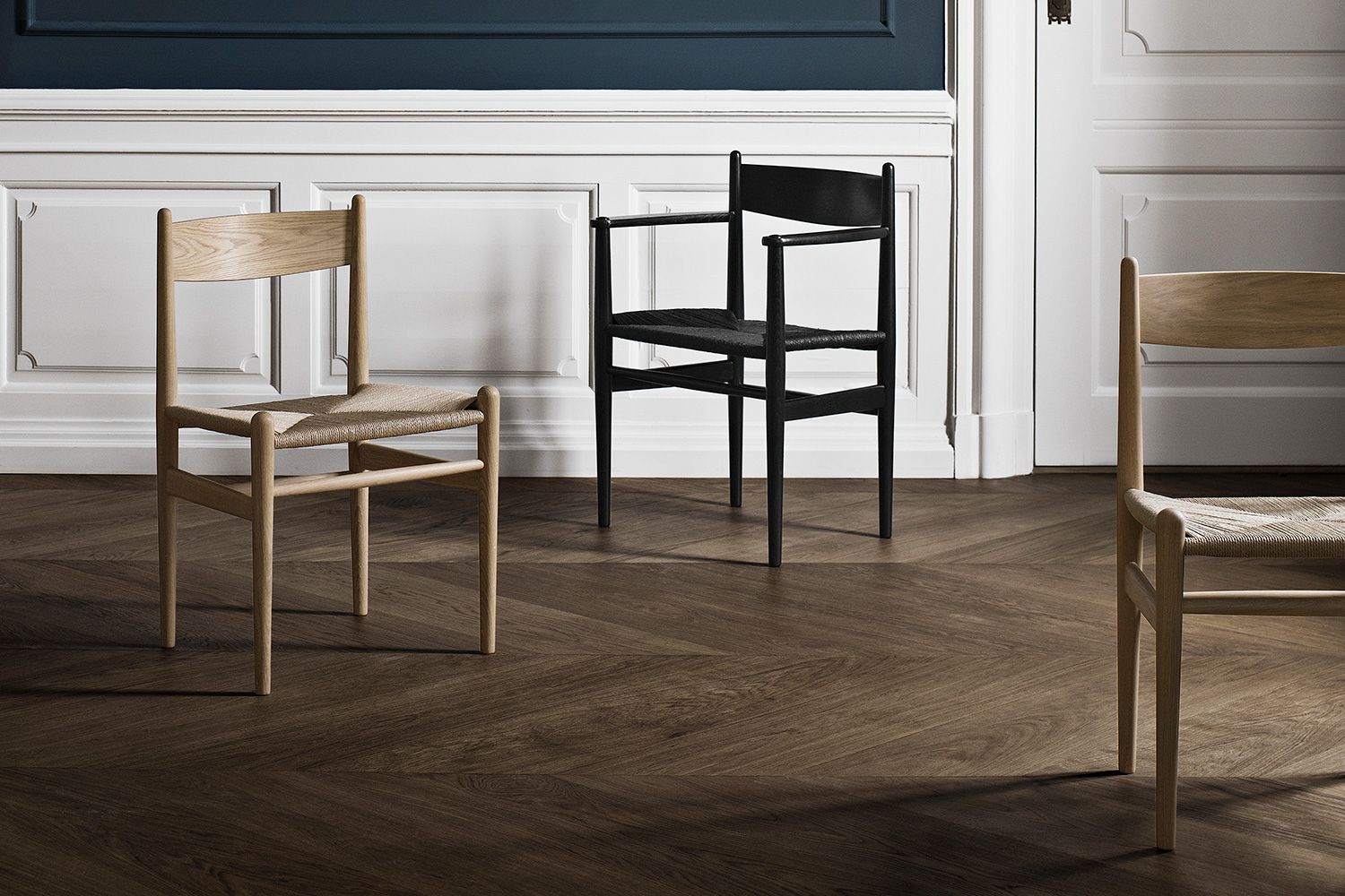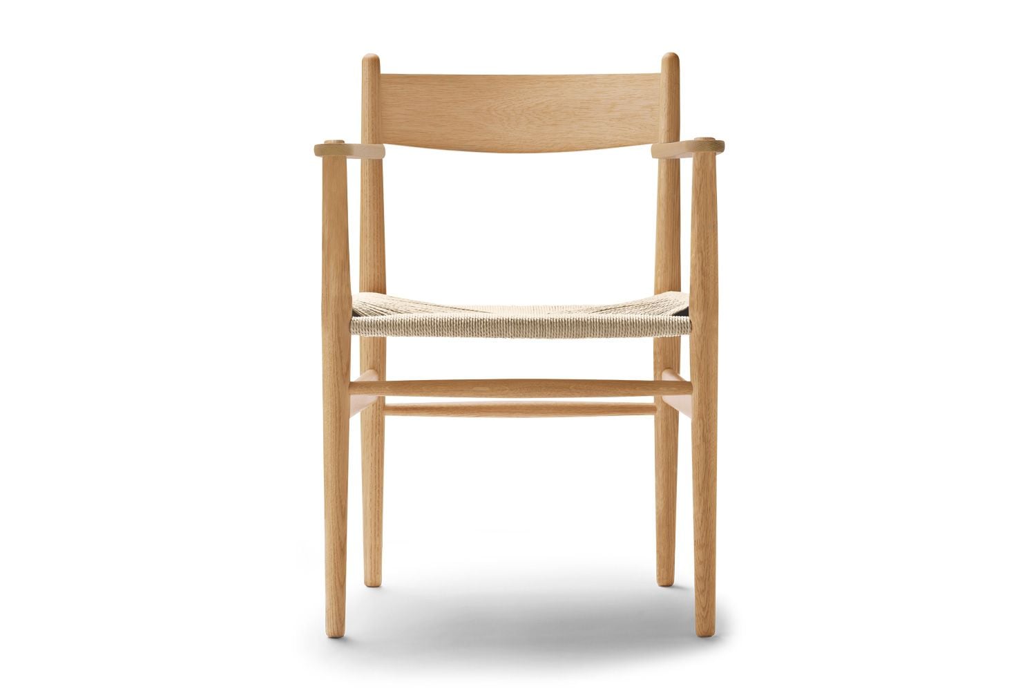 背もたれは、上部と下部のカーブを微妙に変えることで、より背のサポートを強化しています。さらに、繊細な印象を与えるフレームとアーム、そしてペーパーコードを施した美しい座面。いずれも世代を超えて、いつまでも心地よく使用できる耐久性を考慮し製作されています。CH37 アームチェアは、繊細なフォルムと優れた耐久性というコンビネーションを見事に成し遂げ、無類の使用感も相まって世代を超えて受け継がれていく椅子となっています。 アームレスバージョンCH36も用意されています。
