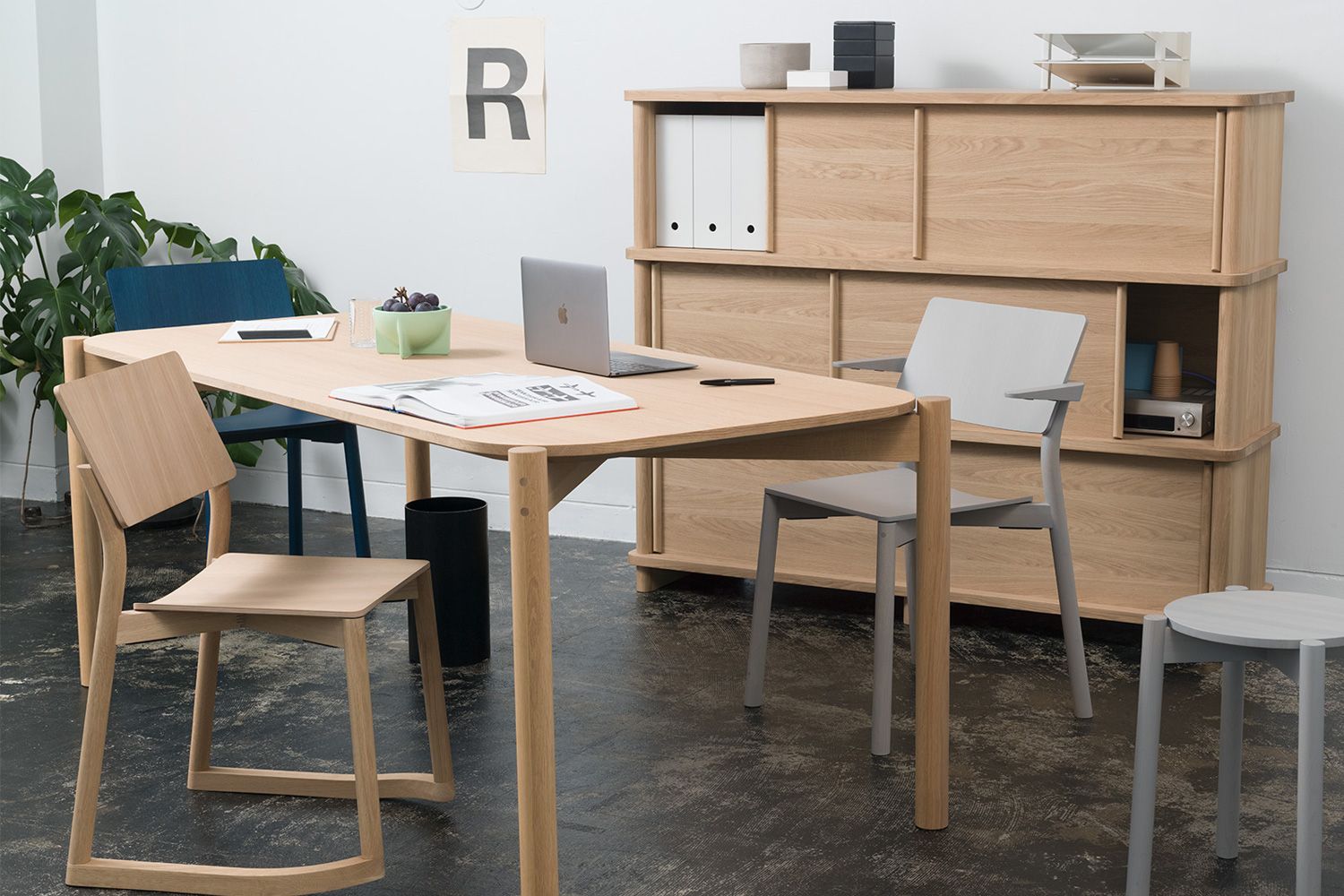 日本の木製家具メーカーであるカリモクが2009年に設立したKarimoku New Standard(カリモク ニュースタンダード)は、先進的なアイデアと優れた製造技術を融合したブランドです。カリモクの職人が培ってきたユニークな視点と、国内外から選ばれた有数のデザイナーたちが手を組み、日本の家具デザインの新たなスタンダードとなるべく取り組んでいます。使用している木材は、主に北日本を原産地とする広葉樹(カエデ、クリ、ナラなど)で、これまでは主に紙パルプ原料のチップとしての利用が多く、広葉樹が持つ本来の価値に比べてあまり有効な利用がされているとは言えませんでした。広葉樹のサスティナブルな活用、さらに森林保全や林業地域の活性化といった日本の森が抱える問題に対し、木製家具メーカーであるわたしたちには何ができるだろうか?どうあるべきなのか? 家具が生まれるまでのどのプロセスにおいても、常にこのテーマに立ち戻り考えています。