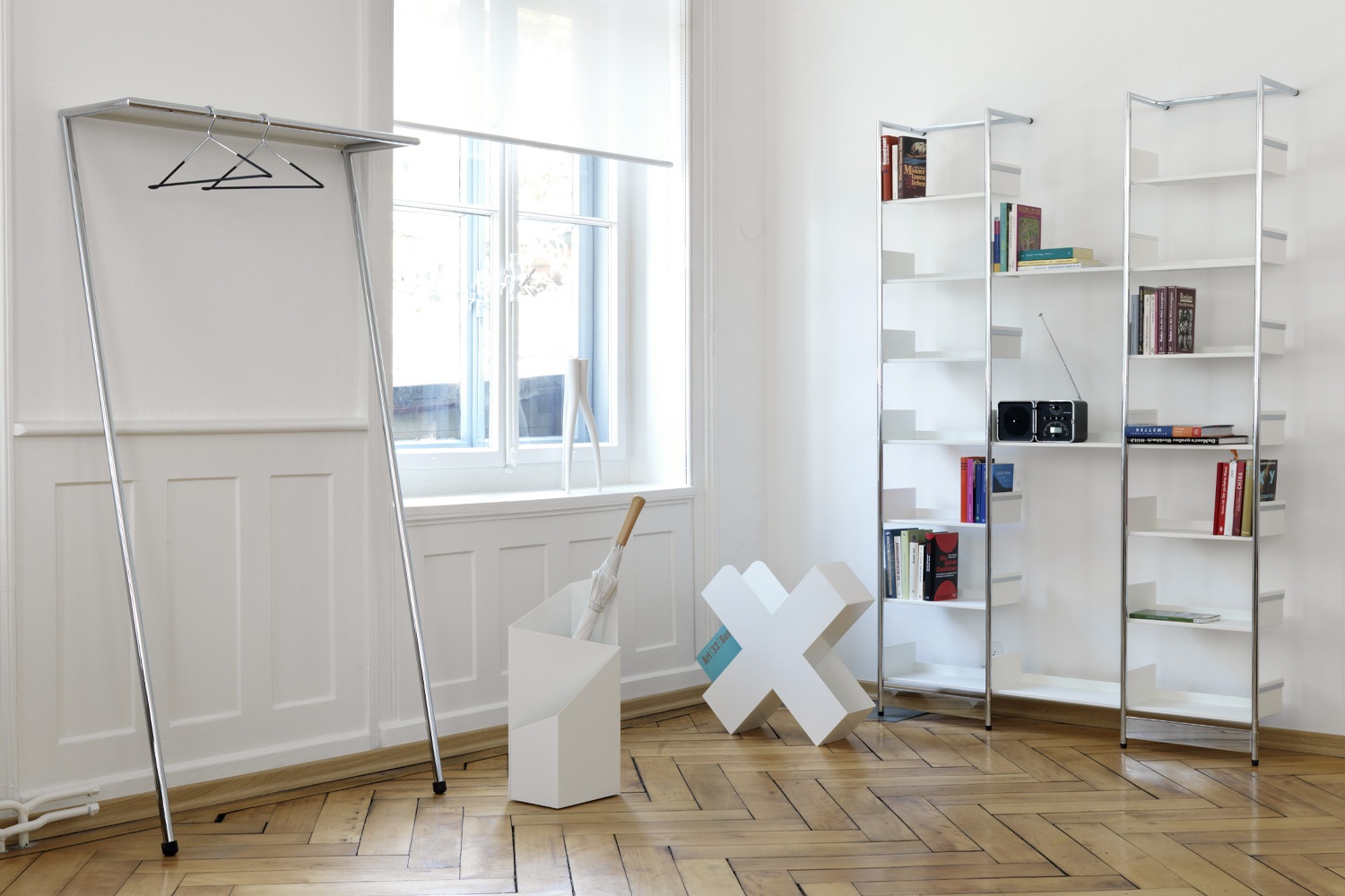 MOX(モックス)はスイスのチューリッヒにあるスチールを使ったハイエンド家具のブランドです。オブジェのように美しくシャープで、最小限とも言えるシンプルなフォルムは、同社の高度なベンディング加工技術によって実現しました。佇まいの美しさだけでなく、 自分ならではの空間作りをお手伝いします。その洗練されたデザインと品質は、ワンランク上の見せる収納として、素敵なルームコーディネートを演出します。
