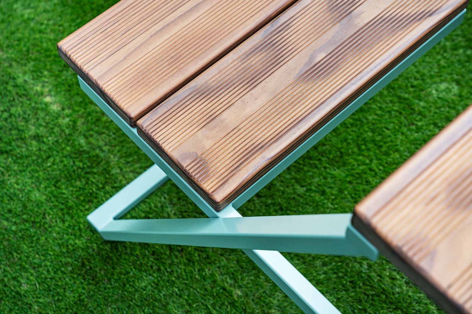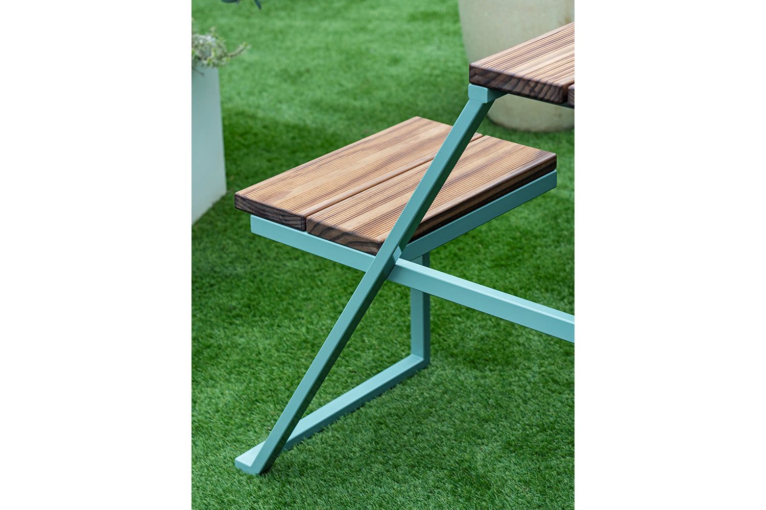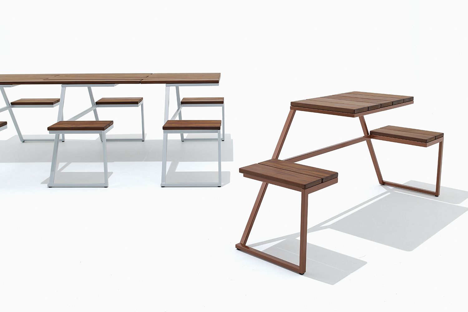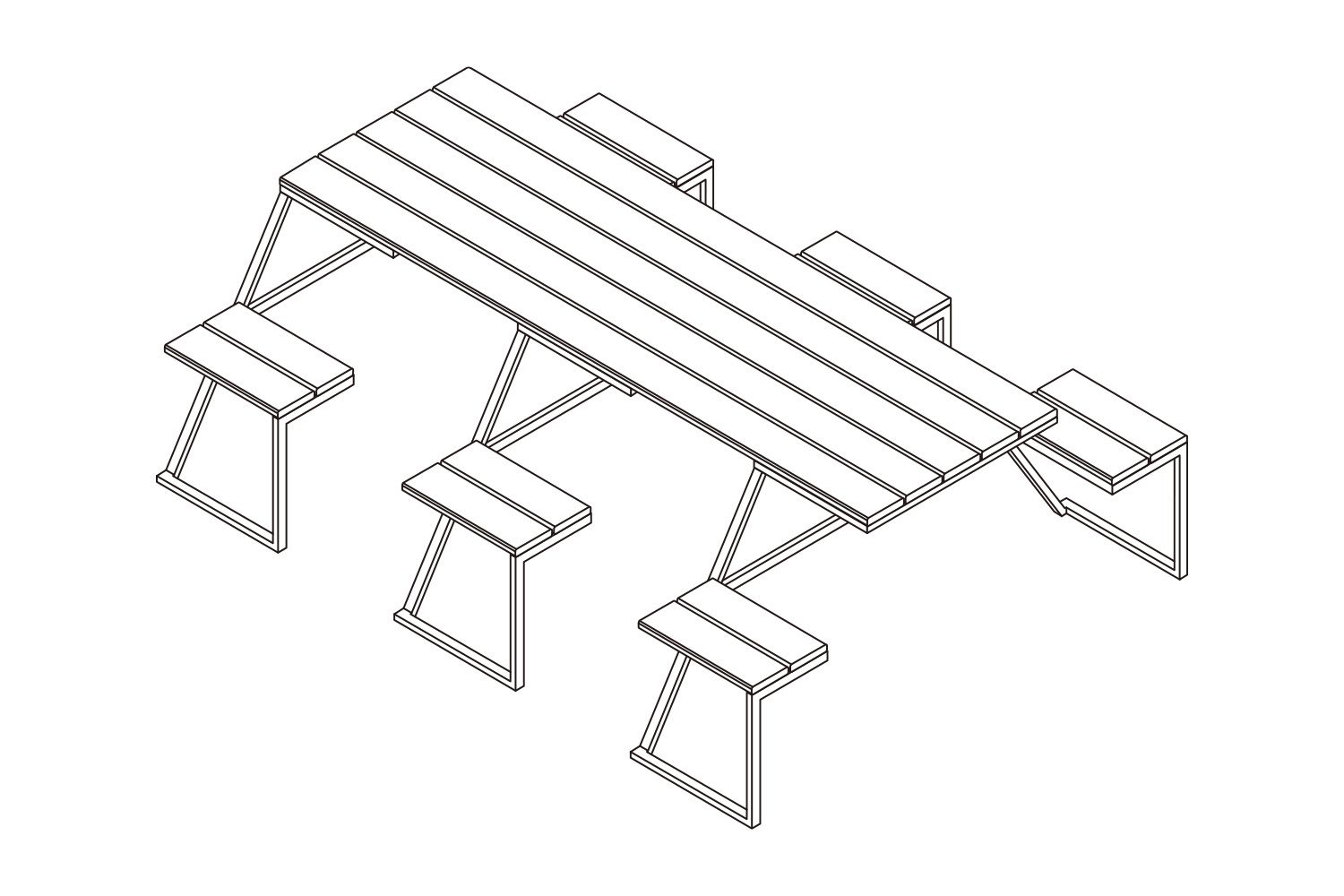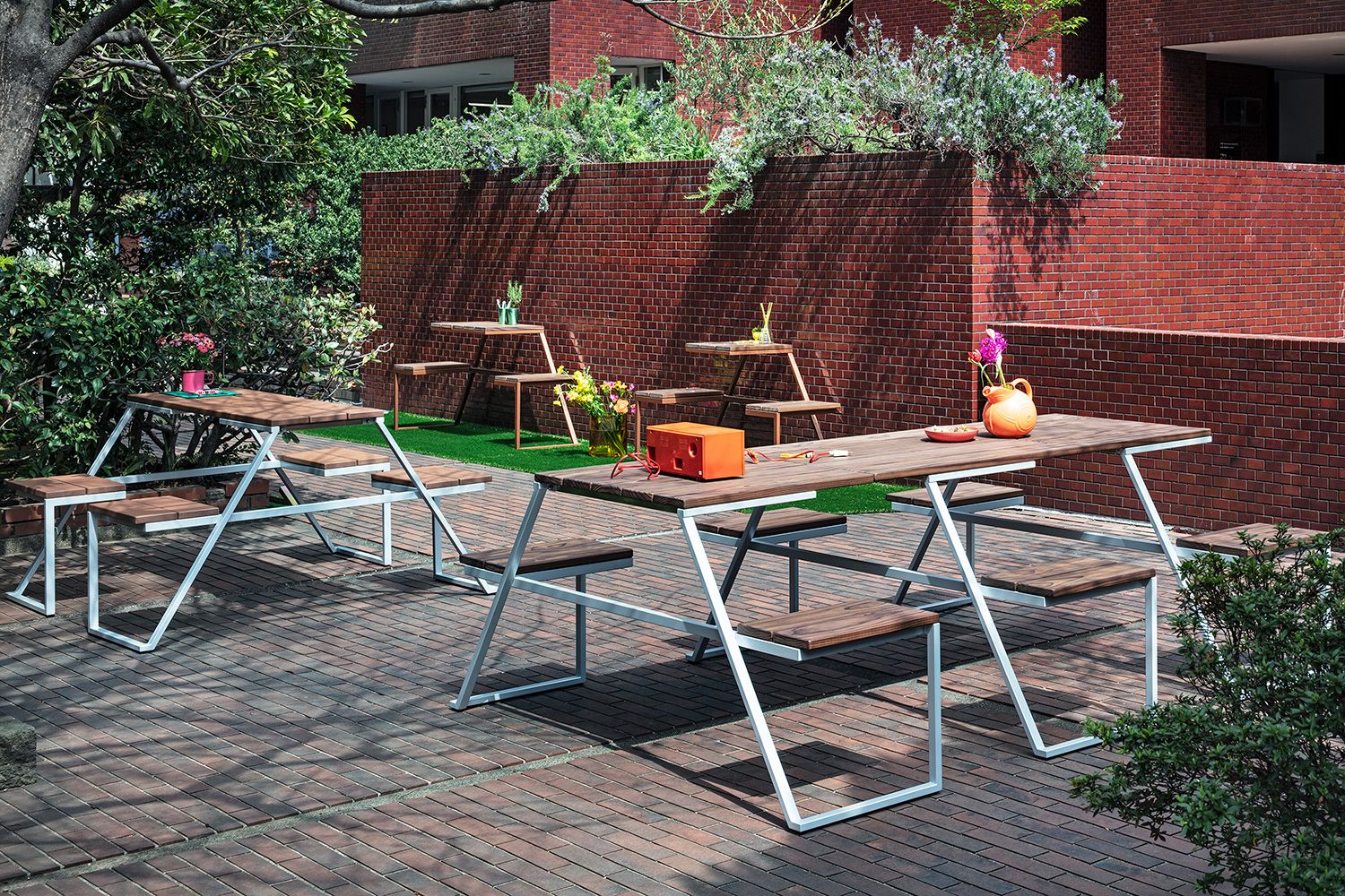 部屋の縁やコーナーにぴったりと収まるように、直線的なラインで構成したテーブル&チェアTERRACE(テラス)。 誰でも気軽に腰を下ろして、さっと使えるように、フレンドリーな表情とアクセスの良さにフォーカスしたデザイン。 座面は多方向からアクセス可能なので、ユーザーが自由な向きで座ることができます。 お庭やテラスでグランピングを楽しんだり、小規模な飲食店やカフェ、通路に横列して置くのにも適しています。