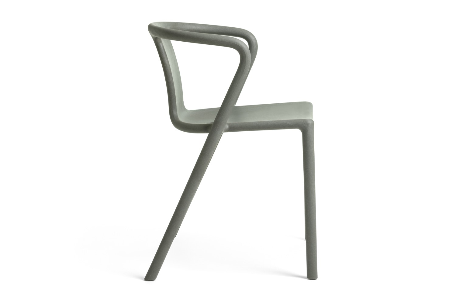 北東イタリアに設立された家具・家庭用品ブランドMagis(マジス)の RE AIR-ARMCHAIR(RE エアアームチェア)は、”Air”という名にふさわしい軽やかなフォルムのチェアです。ポリラミネートと使い捨て食品包装をリサイクルした再生オレフィン樹脂を100%仕様しています。オレフィン樹脂は衝撃に強く軽量、またダイオキシン類が発生しにくいという特徴を持っています。染色を施すことなく材料そのままの色を残したことにより、持続可能な社会の実現に向けたシンボリックなチェアとなりました。