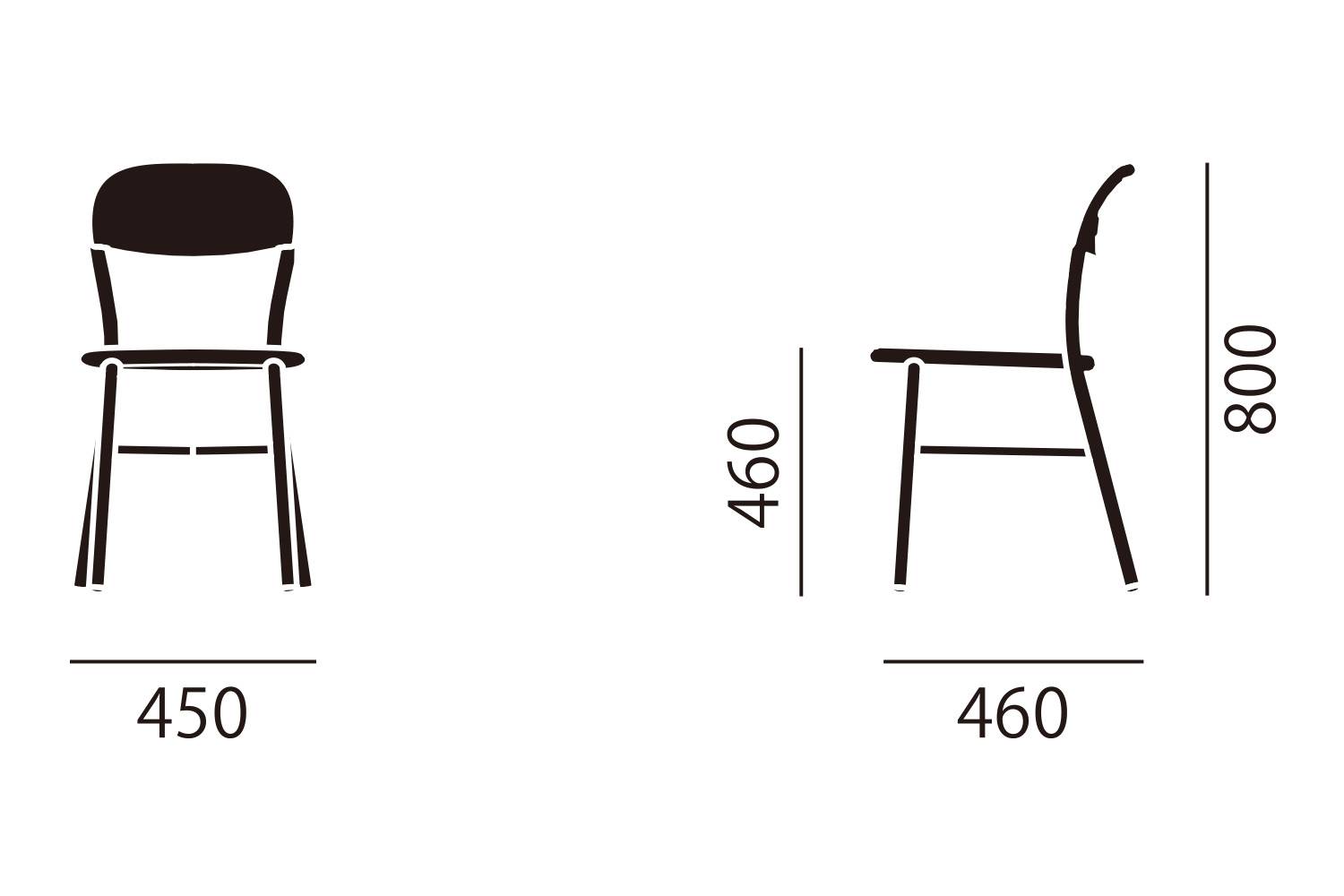 アームレス:幅45 × 奥行46 × 高さ80cm / 座面の高さ46cm