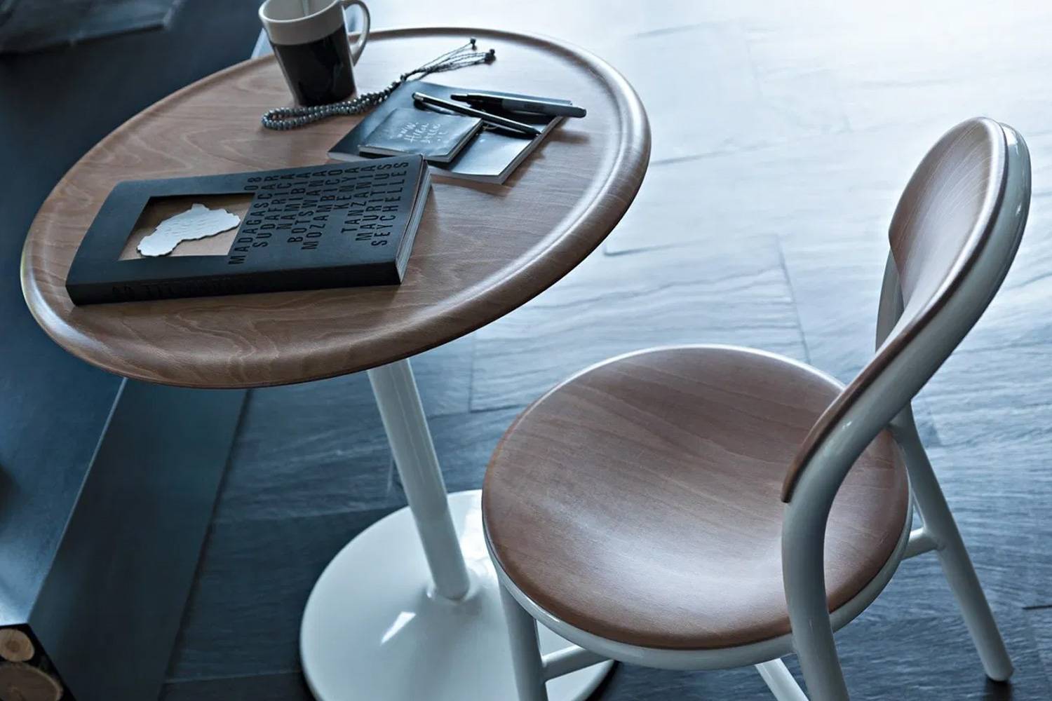 ジャスパー モリソンによる柔らかな曲線を描くアルミチューブのフレームを持つチェアです。 三次曲面を描くプライウッドの背もたれと座面は、ネジやリベットを使うことなく接着剤でフレームに固定されています。