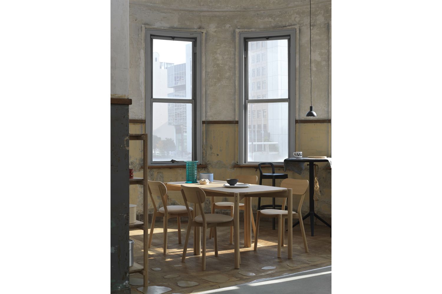 日本の木製家具メーカーであるカリモクが2009年に設立したKarimoku New Standard(カリモク ニュースタンダード)は、先進的なアイデアと優れた製造技術を融合したブランドです。カリモクの職人が培ってきたユニークな視点と、国内外から選ばれた有数のデザイナーたちが手を組み、日本の家具デザインの新たなスタンダードとなるべく取り組んでいます。使用している木材は、主に北日本を原産地とする広葉樹(カエデ、クリ、ナラなど)で、これまでは主に紙パルプ原料のチップとしての利用が多く、広葉樹が持つ本来の価値に比べてあまり有効な利用がされているとは言えませんでした。広葉樹のサスティナブルな活用、さらに森林保全や林業地域の活性化といった日本の森が抱える問題に対し、木製家具メーカーであるわたしたちには何ができるだろうか?どうあるべきなのか? 家具が生まれるまでのどのプロセスにおいても、常にこのテーマに立ち戻り考えています。