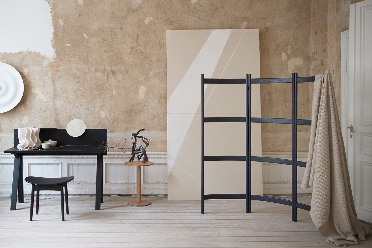 ショージスクリーンは、ファブリック、スカーフ、ブランケットなどを掛けたり、様々な表情を作り出したりできるようにフレームをデザインしています。 空間のアクセントとして、空間を区切るパーティションとしてもご使用いただけます。