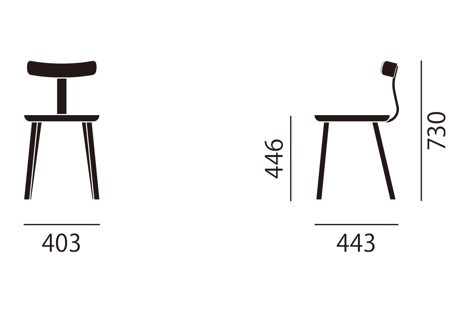 幅40.3 × 奥行44.3 × 高さ73cm / 座面の高さ44.6cm