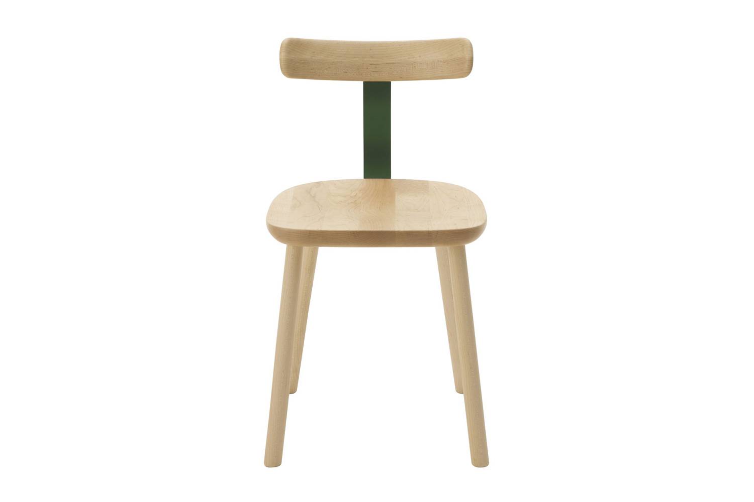 ジャスパー・モリソンによるTチェアは、無垢材を3次元に削り出した座面と背もたれで出来ていて、弾力性のあるスチールで背と座を繋げることにより快適なすわり心地を実現させています。
