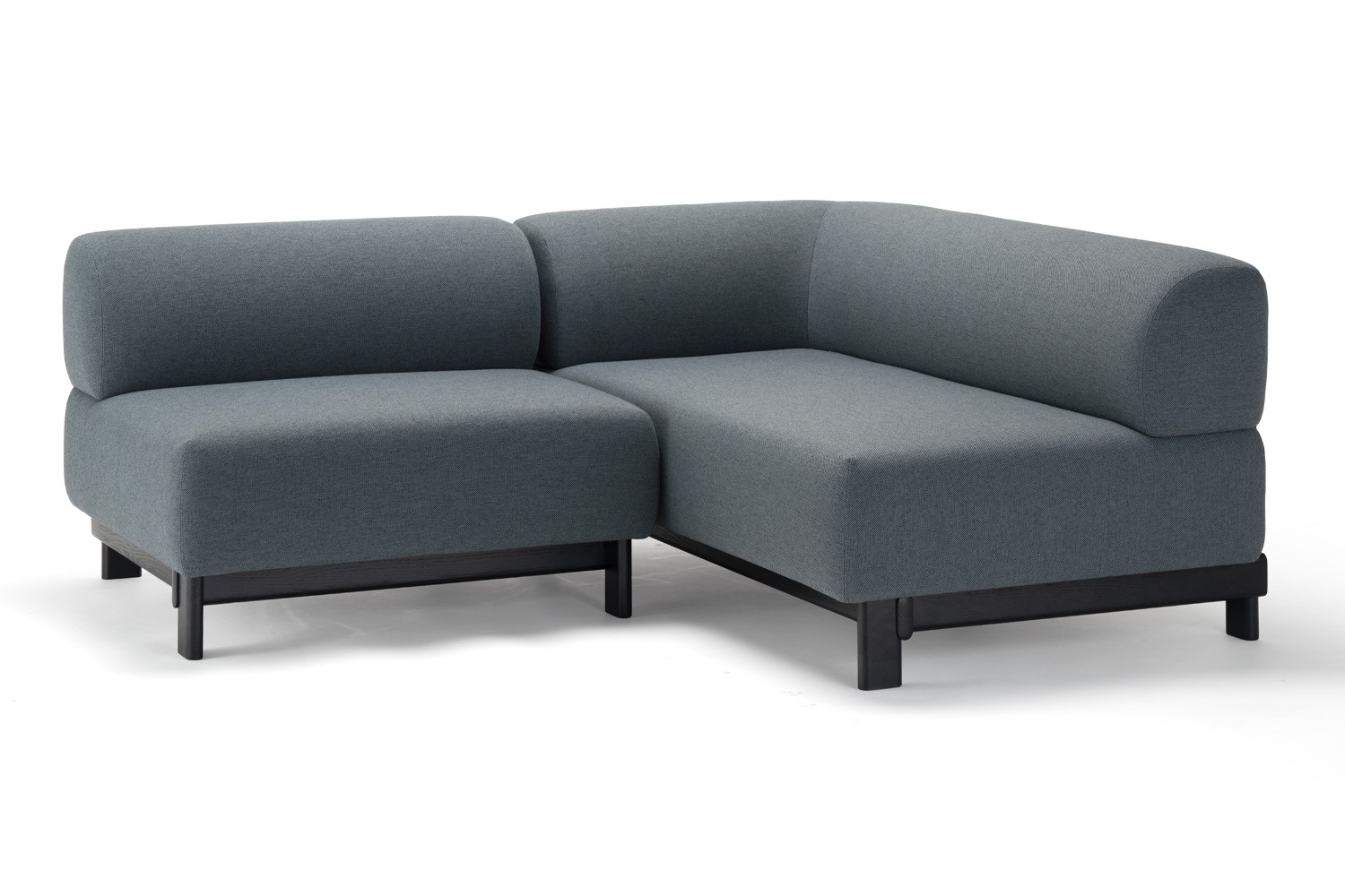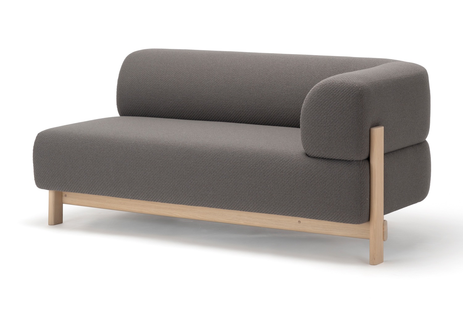 フレームは2色展開で、張地はマハラム社の「モード」「メリット」、クヴァドラ社の「スティールカット トリオ」「ラフ・シモンズ ヴィダー」などの張り地から選ぶことができます。 3シーター、2シーター、1シーター、3シーターベンチ、シェーズロング、アイランド、オットマンと異なるモジュールからなるシリーズなので、組み合わせを変えることで幅広く応用が利くソファです。