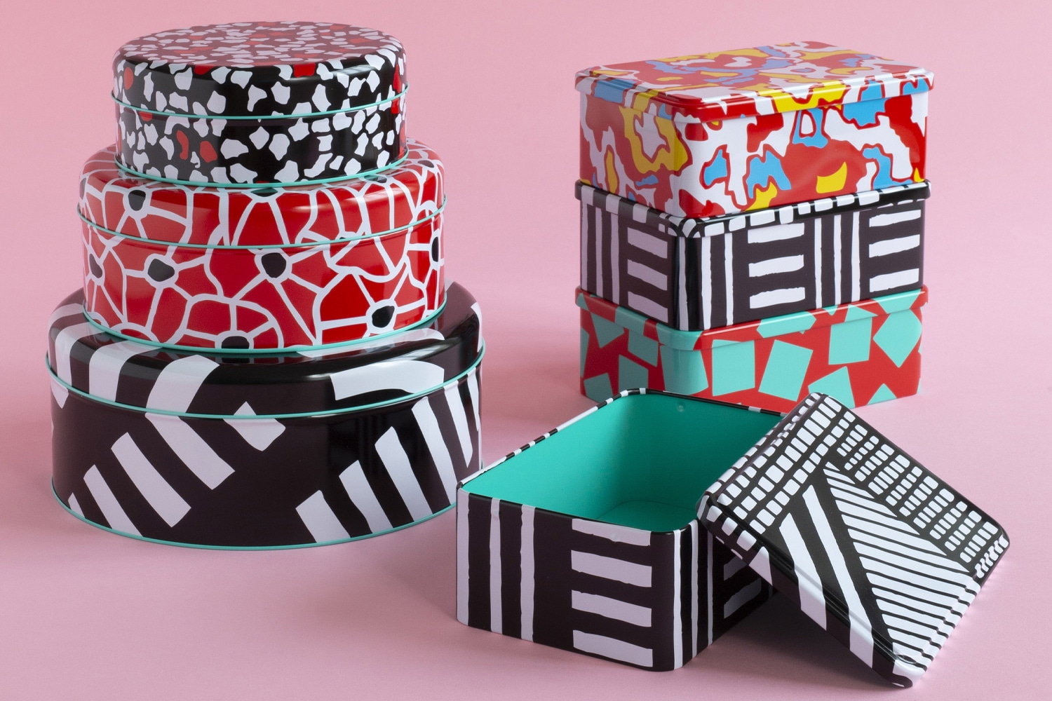 イギリス出身のデザイナーGeorge Sowden(ジョージ・ソーデン)の特徴的なグラフィックで装飾された TIN BOX SET (ブリキボックスセット )は、収納ボックスとしてだけでなく、インテリアのアクセントとしても活躍します。
