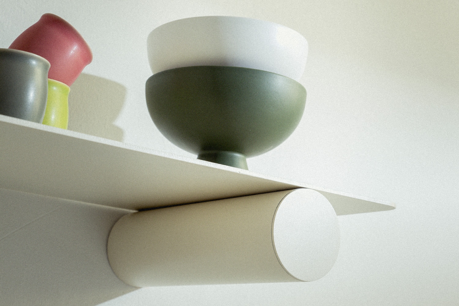 PIPELINE SHELF(パイプライン シェルフ)のデザインは、平面とボリュームの対比、その比率、そしてビビッドな色使いで構成されています。デザイナーのNikolai wiig Hansen ( ニコライ・ウィグ・ハンセン)は、構成主義、ポストモダニズム、ミニマリズムの影響を受けつつも、彼の焦点は日常的な使用にあります。