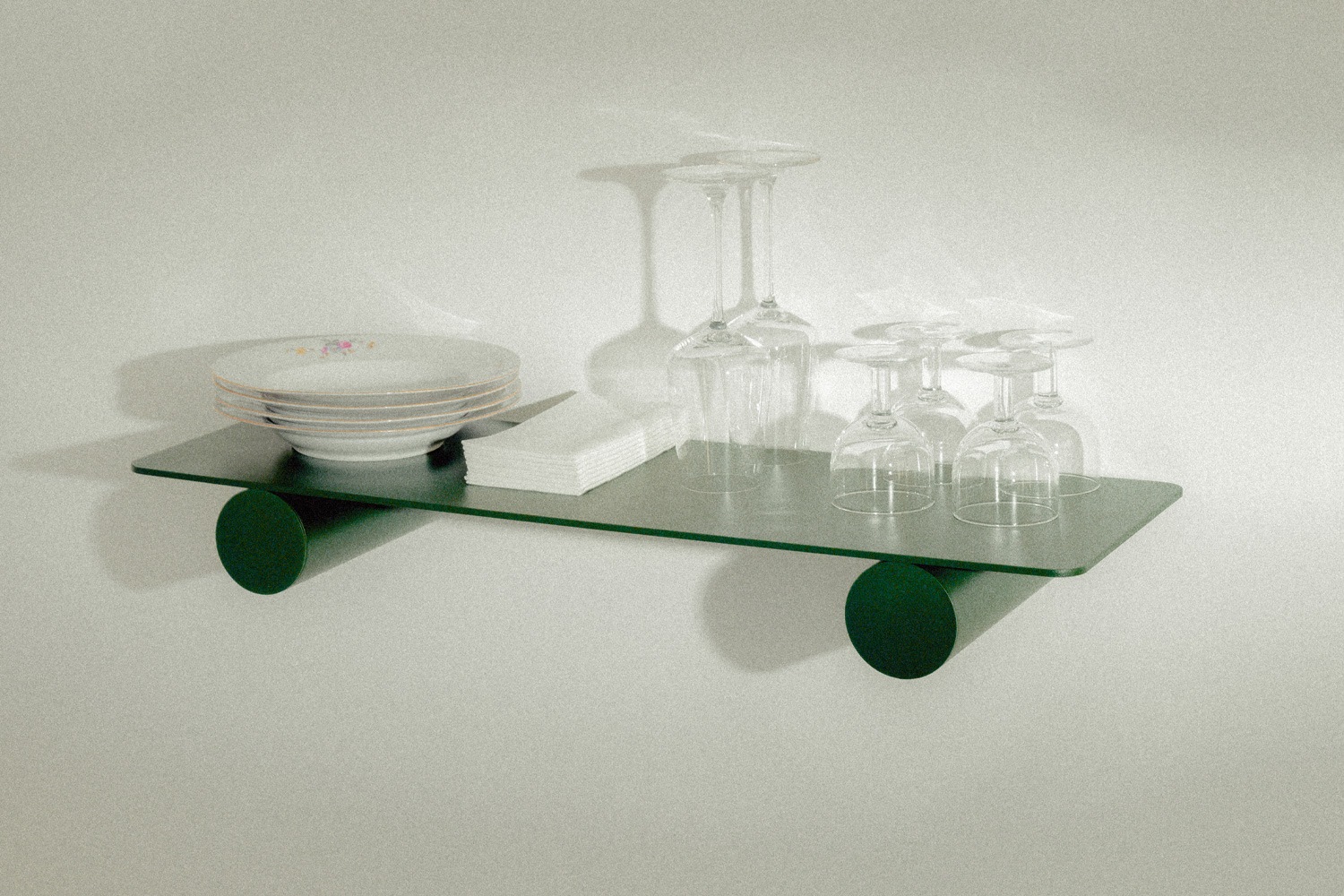 PIPELINE SHELF(パイプライン シェルフ)は、線と円という2つの基本的な幾何学形状を用いたデザインが特徴的なシリーズです。各オブジェクトは平らなアルミニウムプレートとボリュームのあるチューブを組み合わせて作られています。リビングルーム、廊下、バスルーム、キッチンなど、さまざまな用途で使えるようにデザインされています。