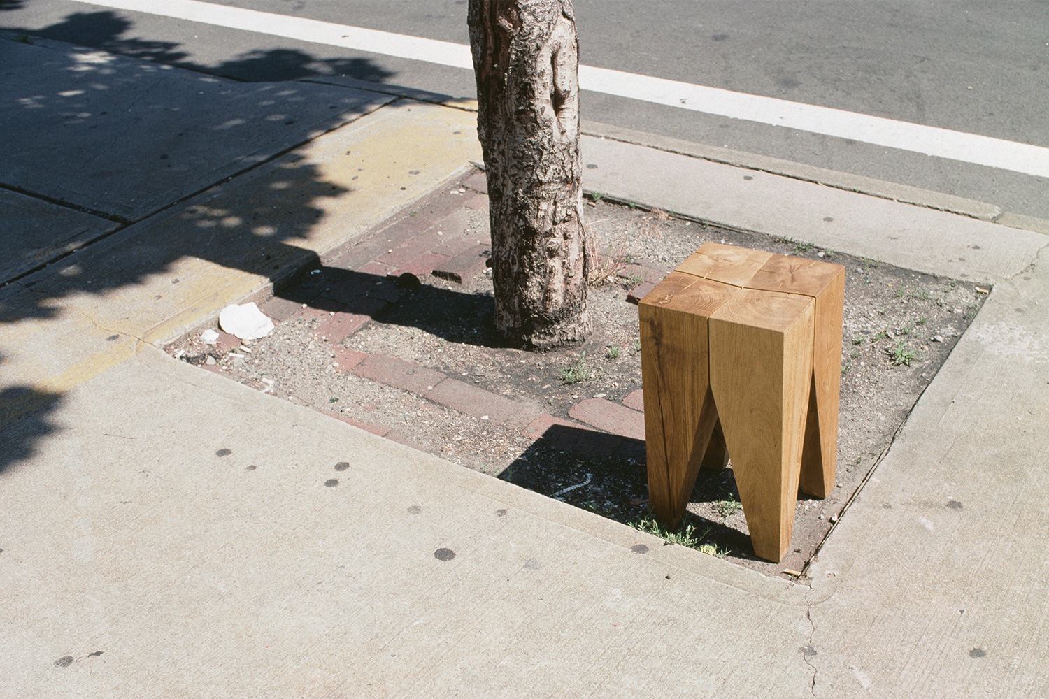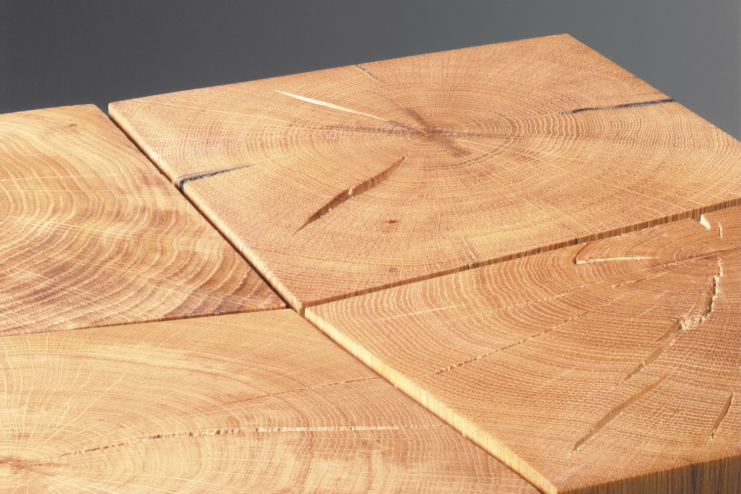 ドイツ語で「臼歯」の意味を持つこの作品は、脚部に向かって細く削りだされた、4つの無垢材のパーツから構成されています。スツールは表面がなだらかに傾斜しています。