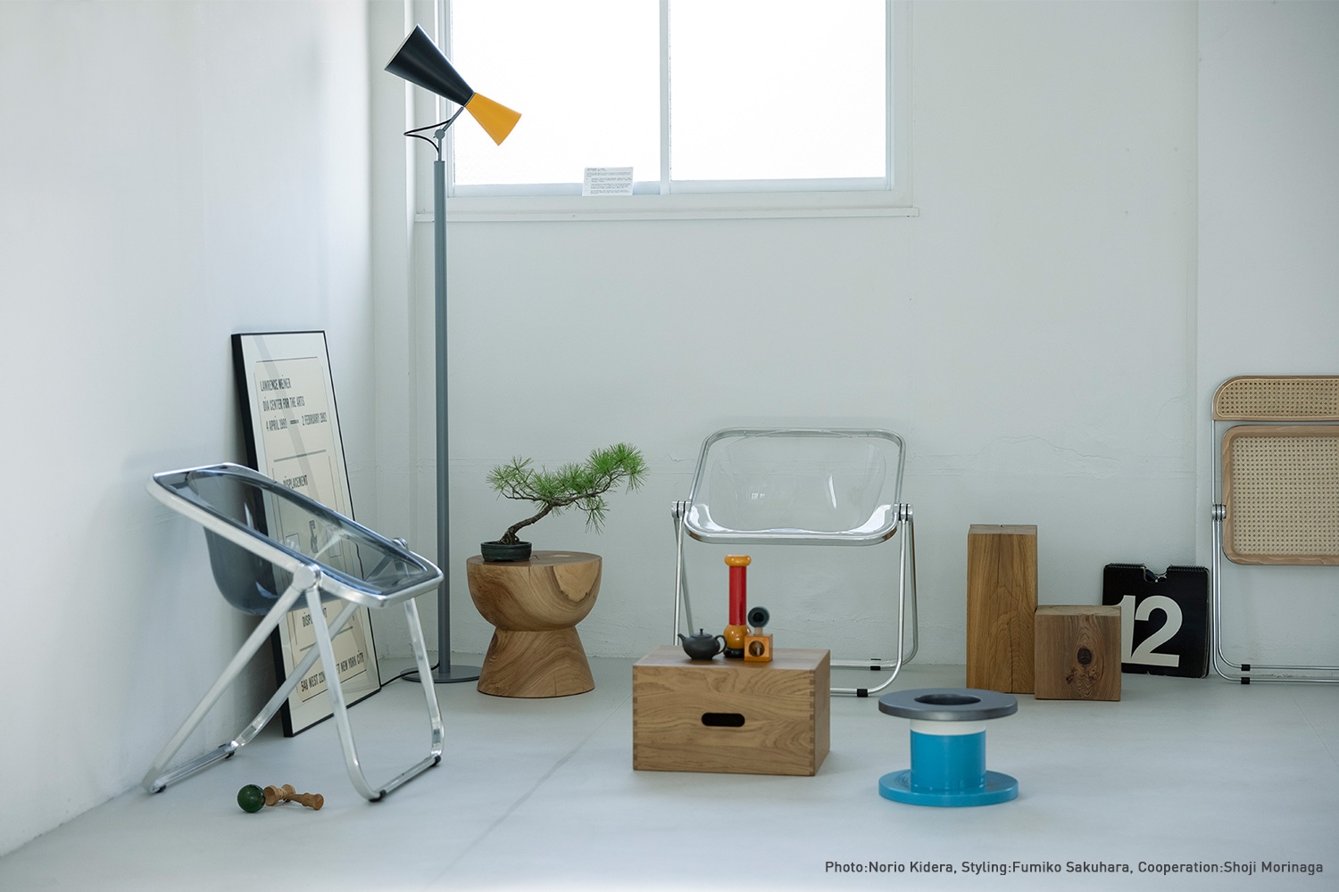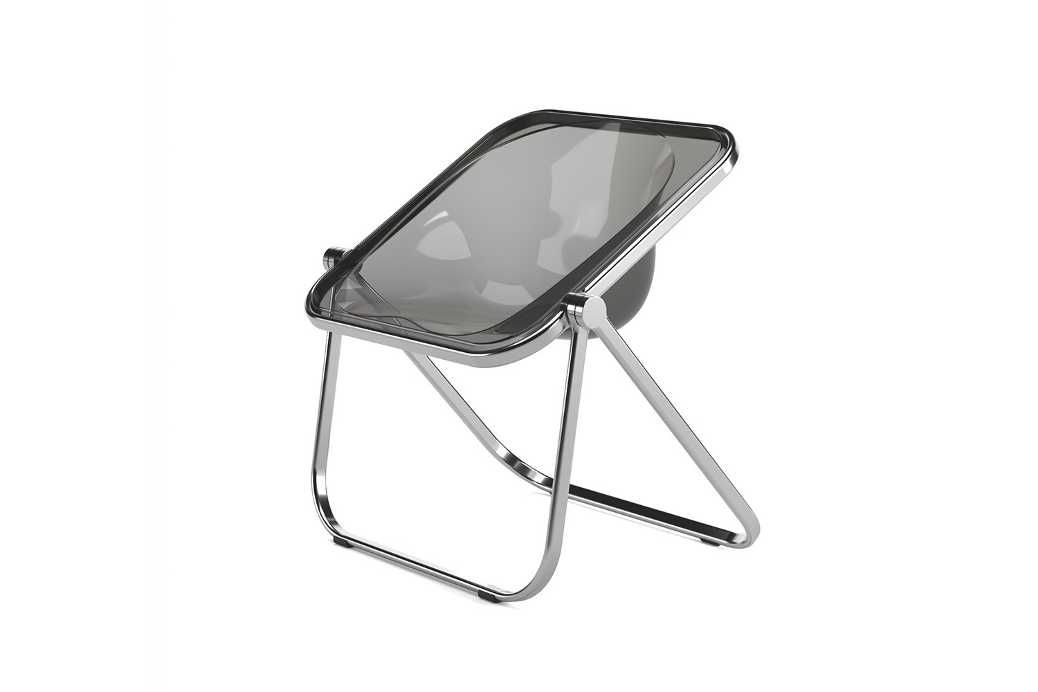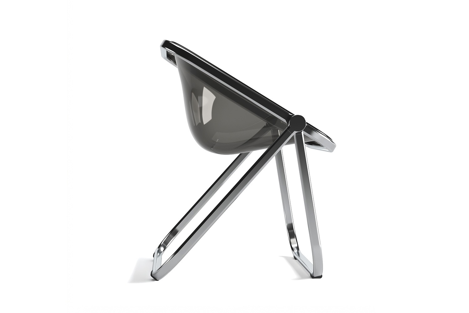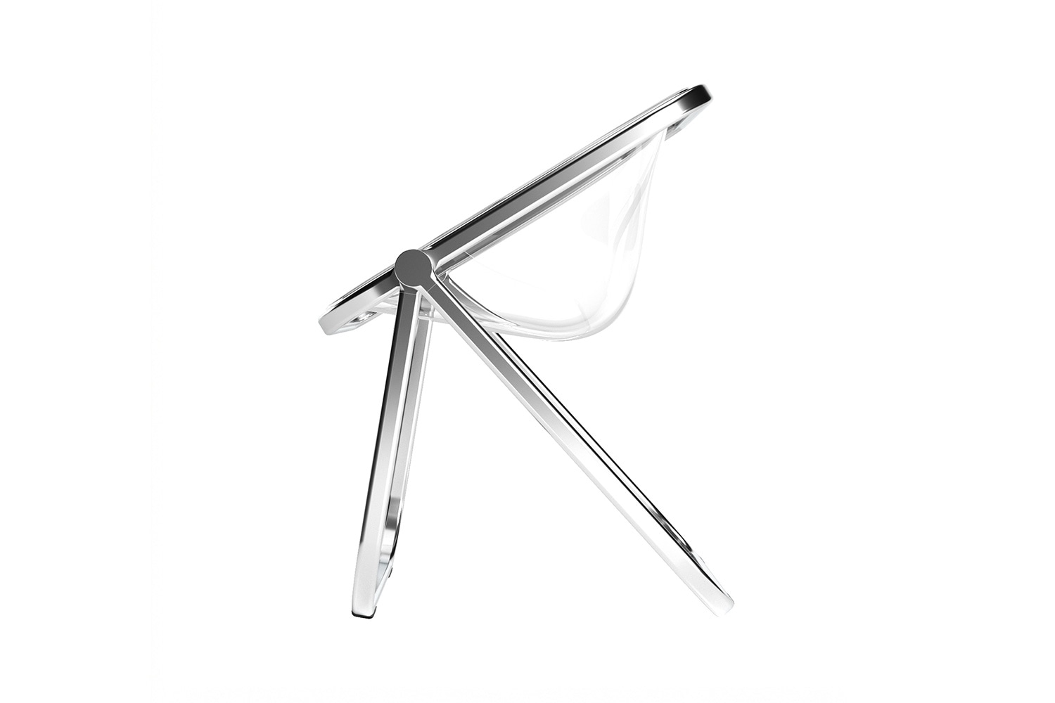 イタリアの名デザイナー、Giancarlo Piretti (ジャンカルロ・ピレッティ)が1970年に発表した折りたたみアームチェアは、1967年にデザインされた名作PLIA(プリアチェア)の構造を受け継ぎ、アルミニウム合金製の特殊な接合部によりスムーズな折りたたみを実現。スタッキングも可能で、省スペース性と高い機能性を兼ね備えています。座面には透明度と耐久性に優れたアクリル樹脂(PMMA)を採用。自動車ランプや大型水槽にも使用される素材で、天候や衝撃にも強く、長く美しさを保ちます。