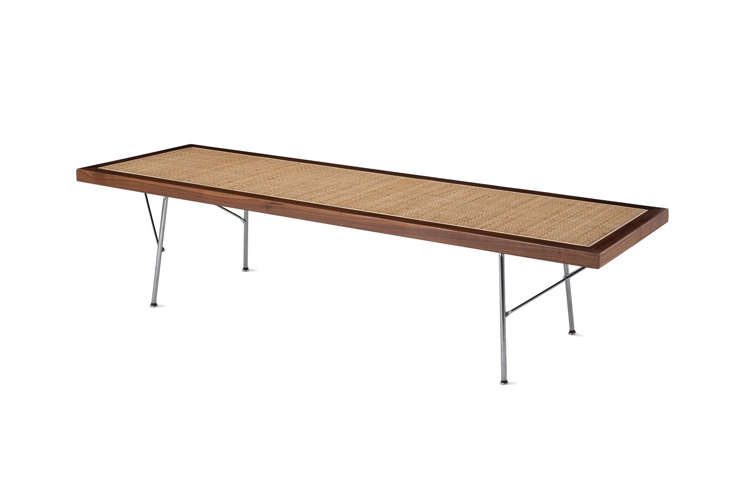 ジョージ・ネルソンは「形が機能を示すべき」と考えたミッドセンチュリー屈指の巨匠。プラットフォームベンチが「滞在を促さない」設計だったのに対し、ケーン ベンチはその逆、「滞在したくなる」デザインです。その温かみある佇まいは、現代の暮らしにも自然に溶け込み、多目的に活用できます。