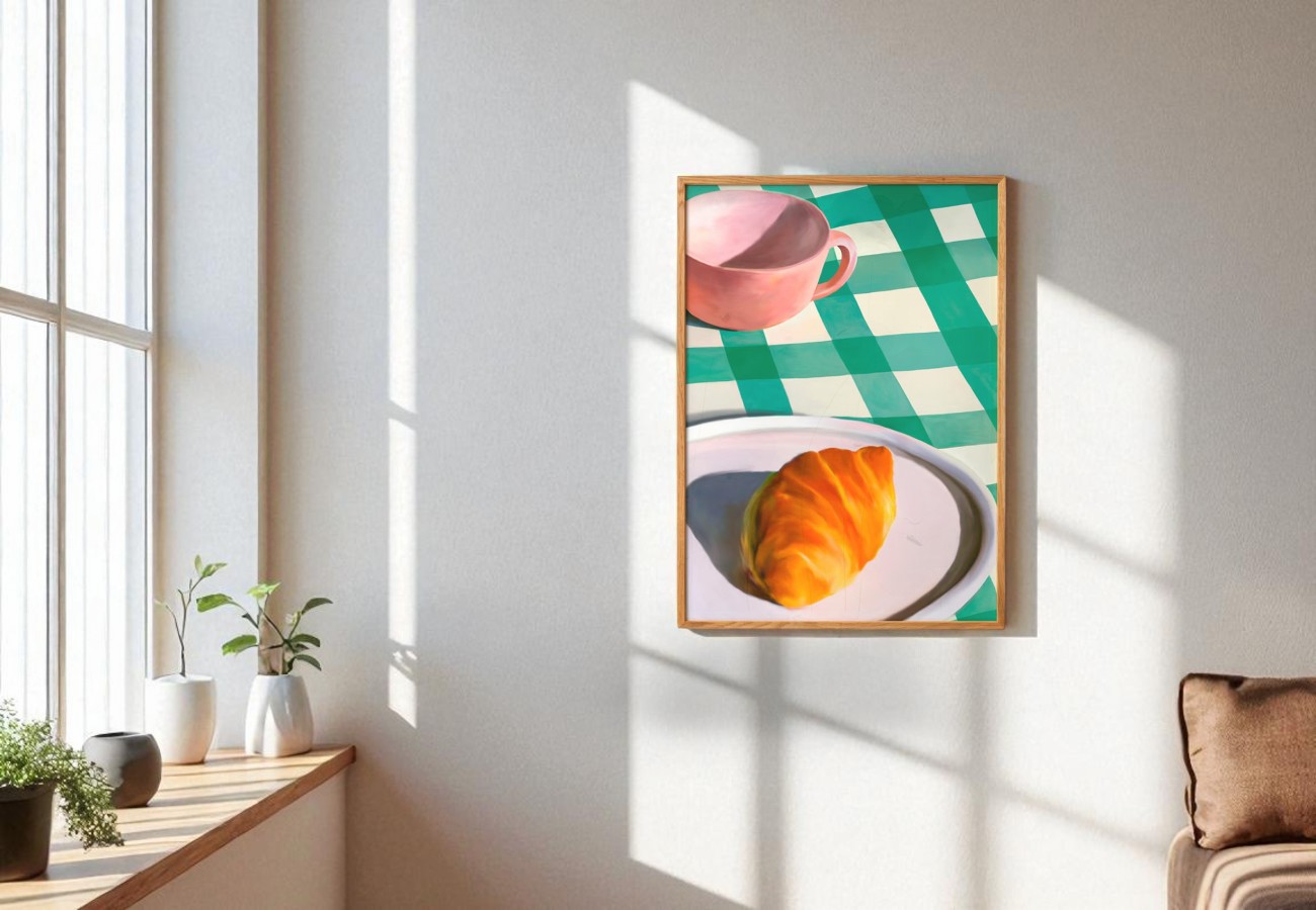 日曜の朝を思わせるような温かなビジュアルで、日常の空間に心地よいやすらぎをもたらします。デンマークで制作され、FSC認証の200g無コーティング紙に、12色ジクレー印刷を施したアートプリントです。アートとしての風格と環境への配慮を両立した高品質な仕上がりです。キッチンやダイニングでは、朝食の時間にそっと寄り添い、食卓にゆったりとした空気感を添えてくれます。コーヒーやクロワッサンとともに、日々の小さな幸せを引き立てる一枚です。