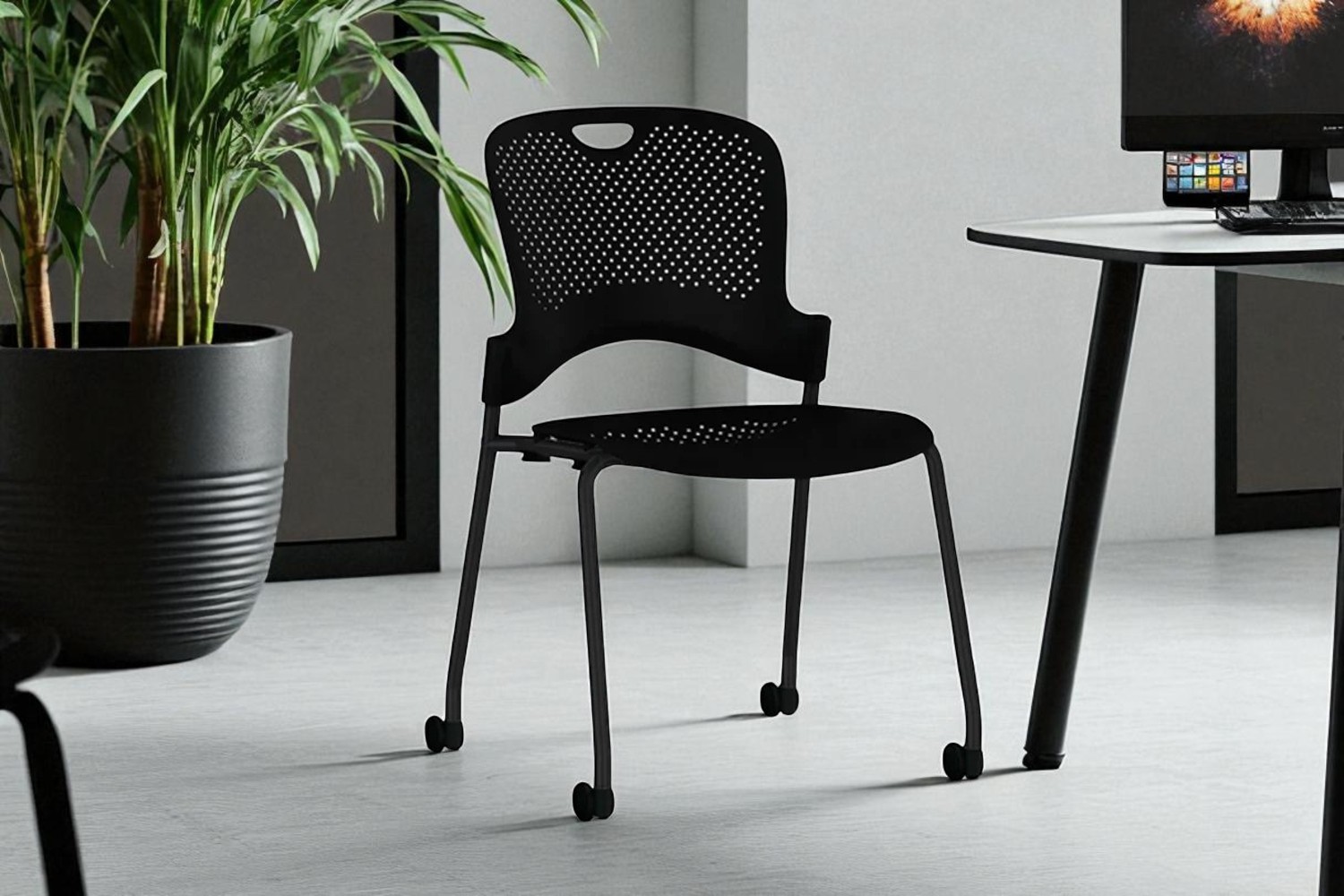 CAPER STACKING CHAIR(ケイパー スタッキングチェア)は、Herman Miller(ハーマンミラー)とデザイナーJeff Weber(ジェフ・ウェバー)によって開発された、シンプルで機能的なスタッキングチェアです。 軽量で持ち運びやすく、必要に応じて積み重ねて収納できるため、オフィスや会議室、教育施設、カフェスペースなど幅広いシーンで活躍します。