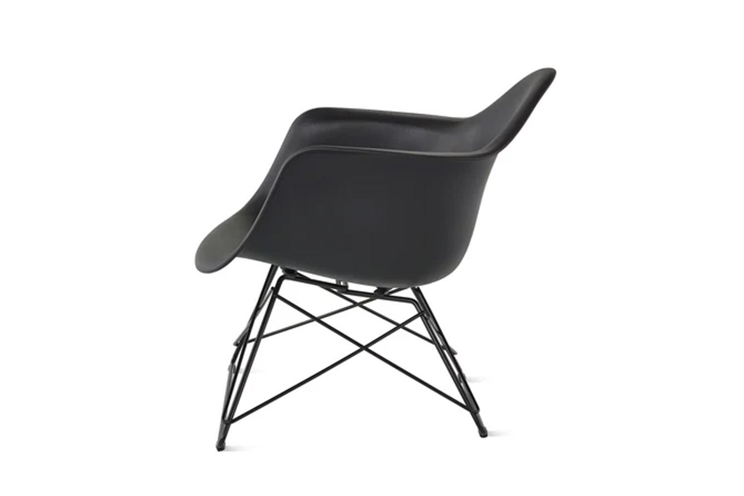 一体成型された有機的な曲線を持つプラスチックシェルは、身体をやさしく包み込み、アーム付きのデザインによってさらに快適な座り心地を実現。シンプルで軽やかなワイヤーベースとの組み合わせは、無駄をそぎ落としたモダンデザインの象徴とも言えます。ローワイヤーベース仕様は座面の高さを低めに設計しており、リビングやラウンジ空間に最適。ソファと組み合わせたリラックスチェアや、コーヒーテーブルと合わせたラウンジチェアとしても活躍します。日常生活の中で自然に溶け込みながら、空間にミッドセンチュリーのアイコン的存在感を添える一脚です。