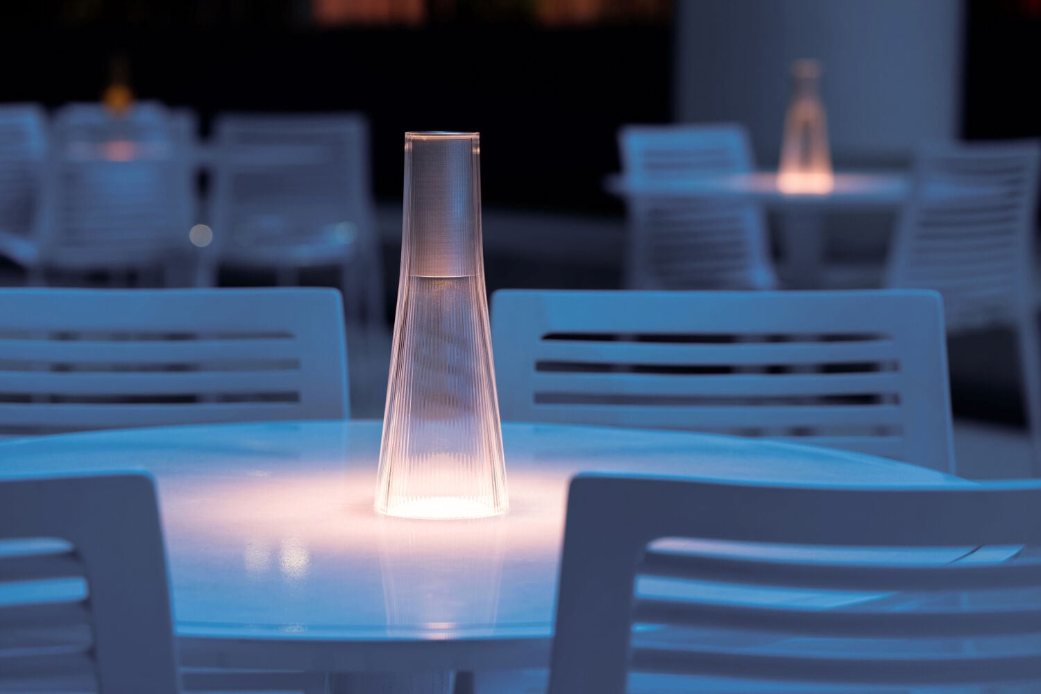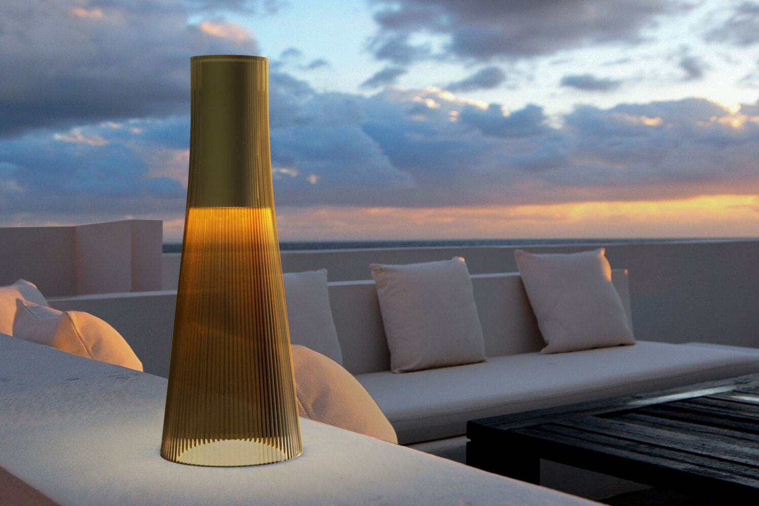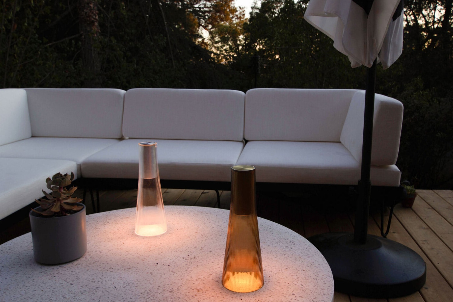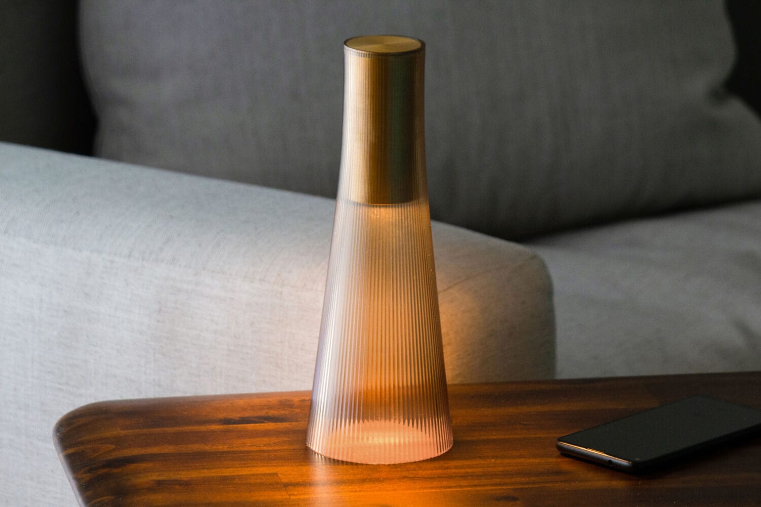 USB充電式で、フル充電後はシーンに応じて約10〜150時間の連続点灯が可能。タッチセンサーによる4段階調光機能とウォームディム(2500K〜1800K)の色温度変化により、キャンドルのように心地よい光を自在に演出できます。コンパクトかつ軽量設計のため、リビングやベッドサイド、ダイニングはもちろん、テラスやアウトドアシーンでも気軽に持ち運びが可能です