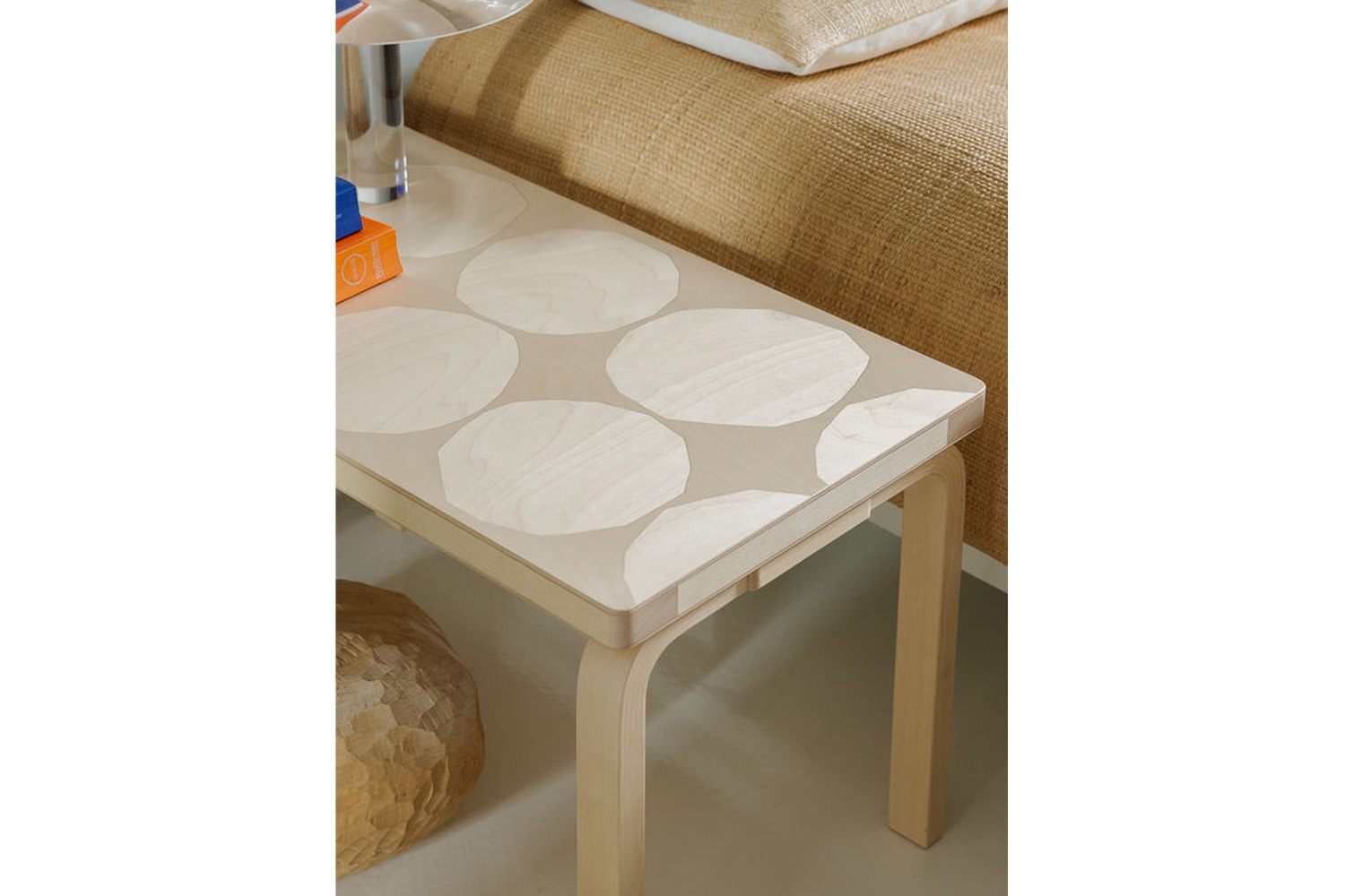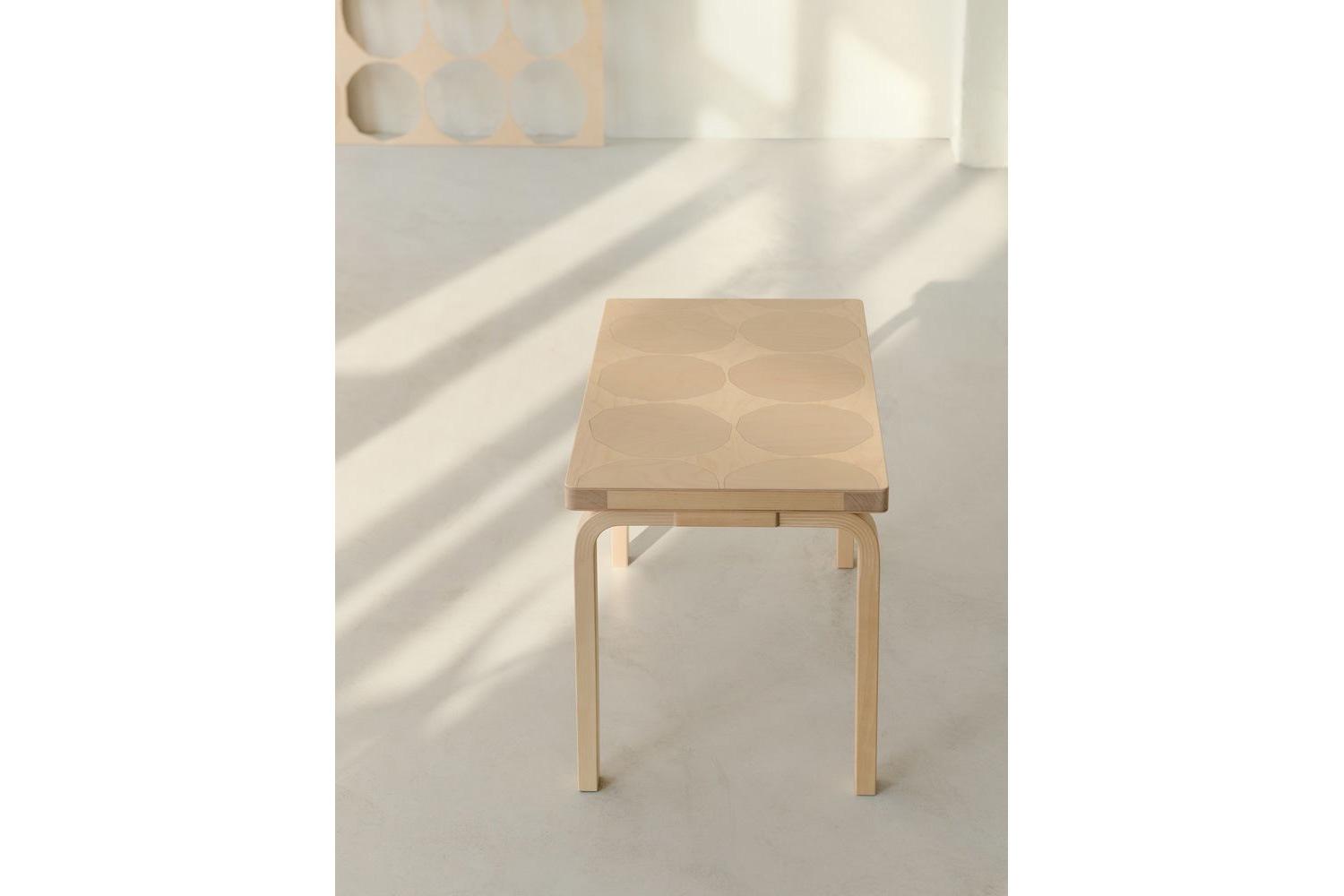 ハサミで切った円形をモチーフにした有機的なパターンは、シンプルでありながら強い存在感を放ちます。