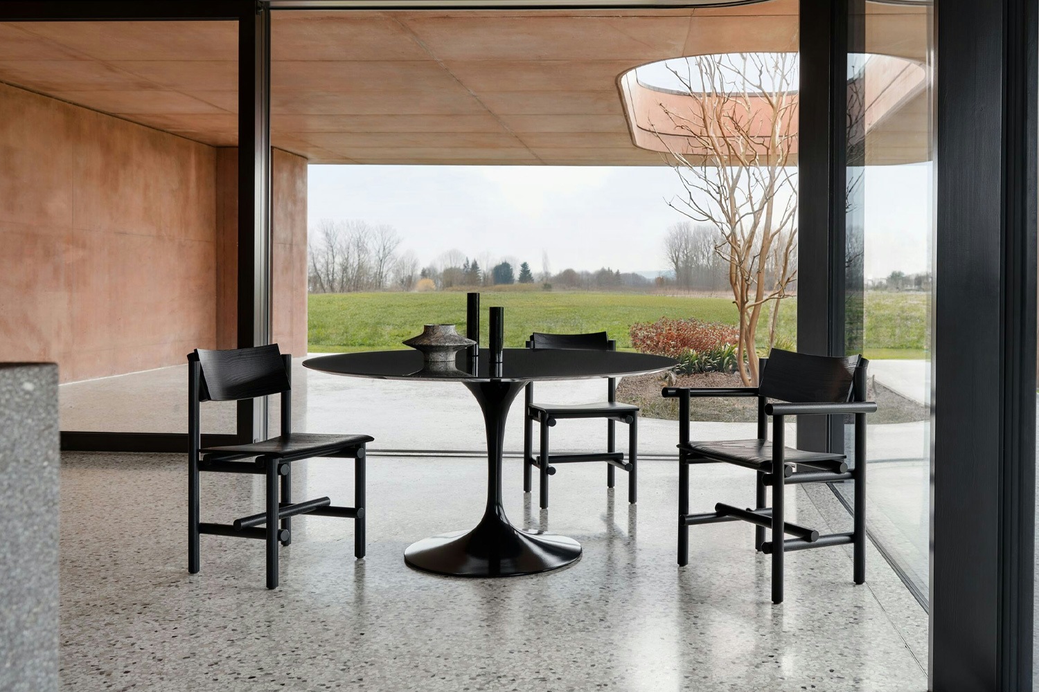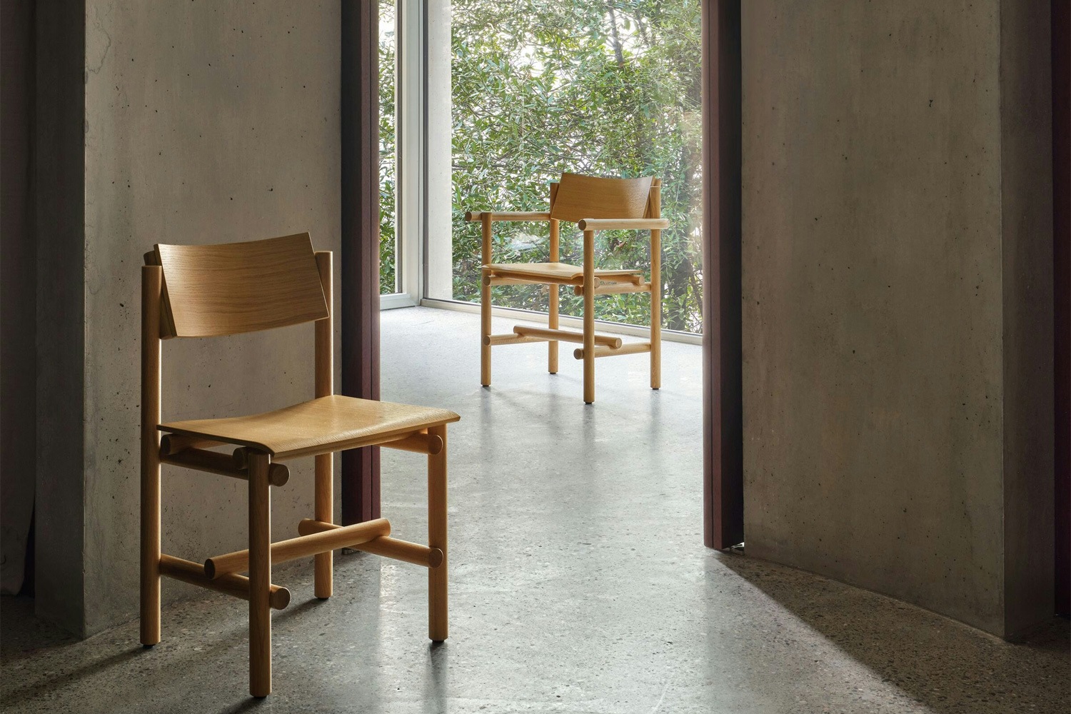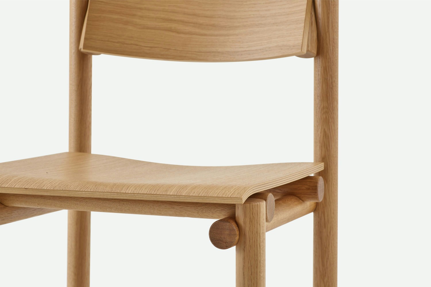 ミュークは建築家としての視点から、椅子やテーブルを単なるオブジェクトとしてではなく、空間の中での関係性として捉えています。内部に論理を持つ素材が生み出す寛容な存在感は、置かれる空間に自然に馴染みながらも、目には見えない秩序を与えます。 日常の食卓に寄り添いながら、素材と形の対話を楽しむことができるこのチェアは、見た目の美しさだけでなく、座る体験そのものを豊かにしてくれる一脚です。