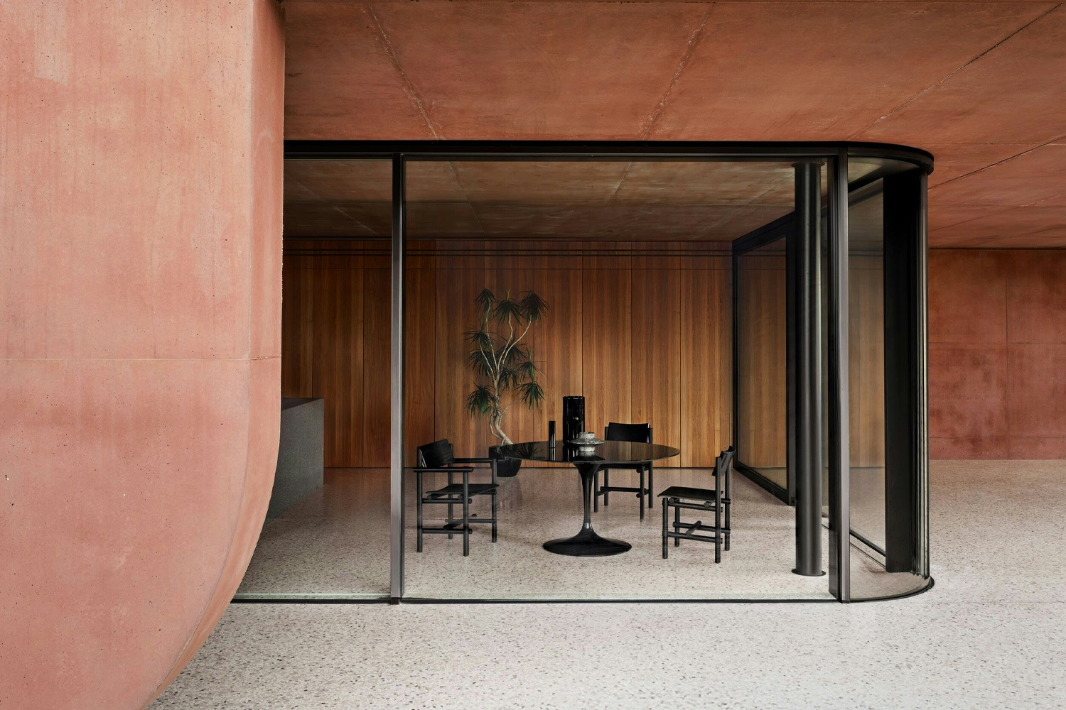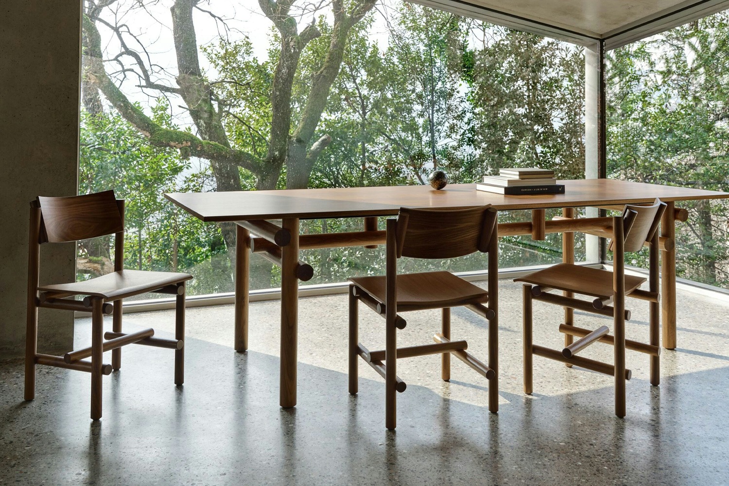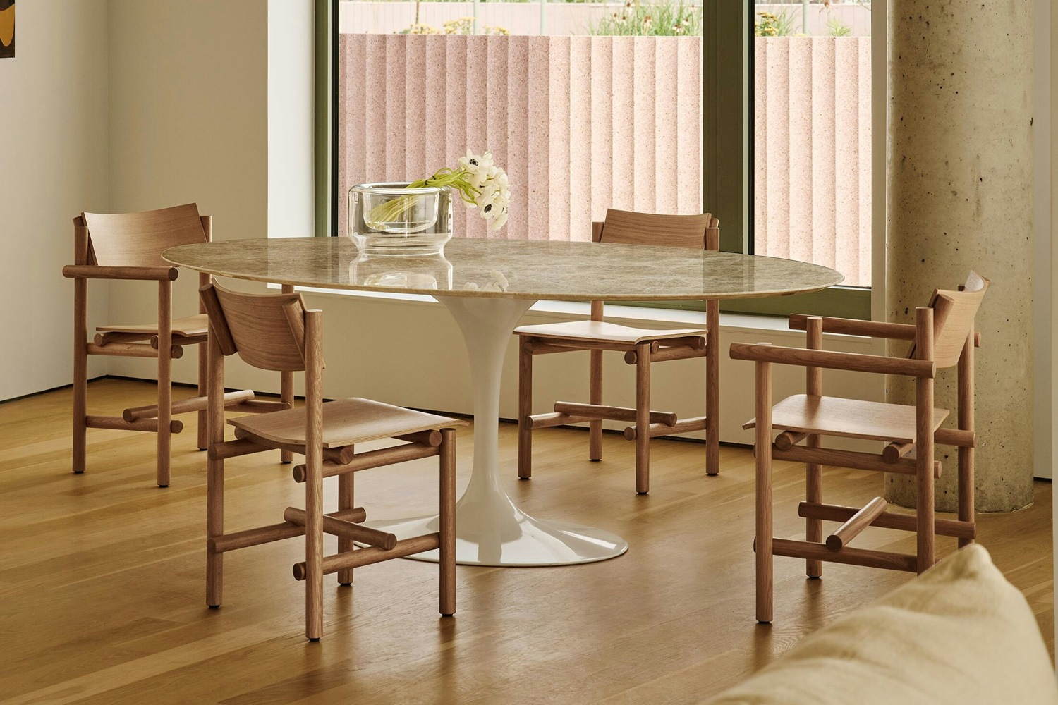 ミュークは建築家としての視点から、椅子やテーブルを単なるオブジェクトとしてではなく、空間の中での関係性として捉えています。内部に論理を持つ素材が生み出す寛容な存在感は、置かれる空間に自然に馴染みながらも、目には見えない秩序を与えます。 日常の食卓に寄り添いながら、素材と形の対話を楽しむことができるこのチェアは、見た目の美しさだけでなく、座る体験そのものを豊かにしてくれる一脚です。