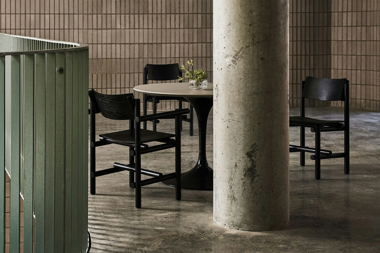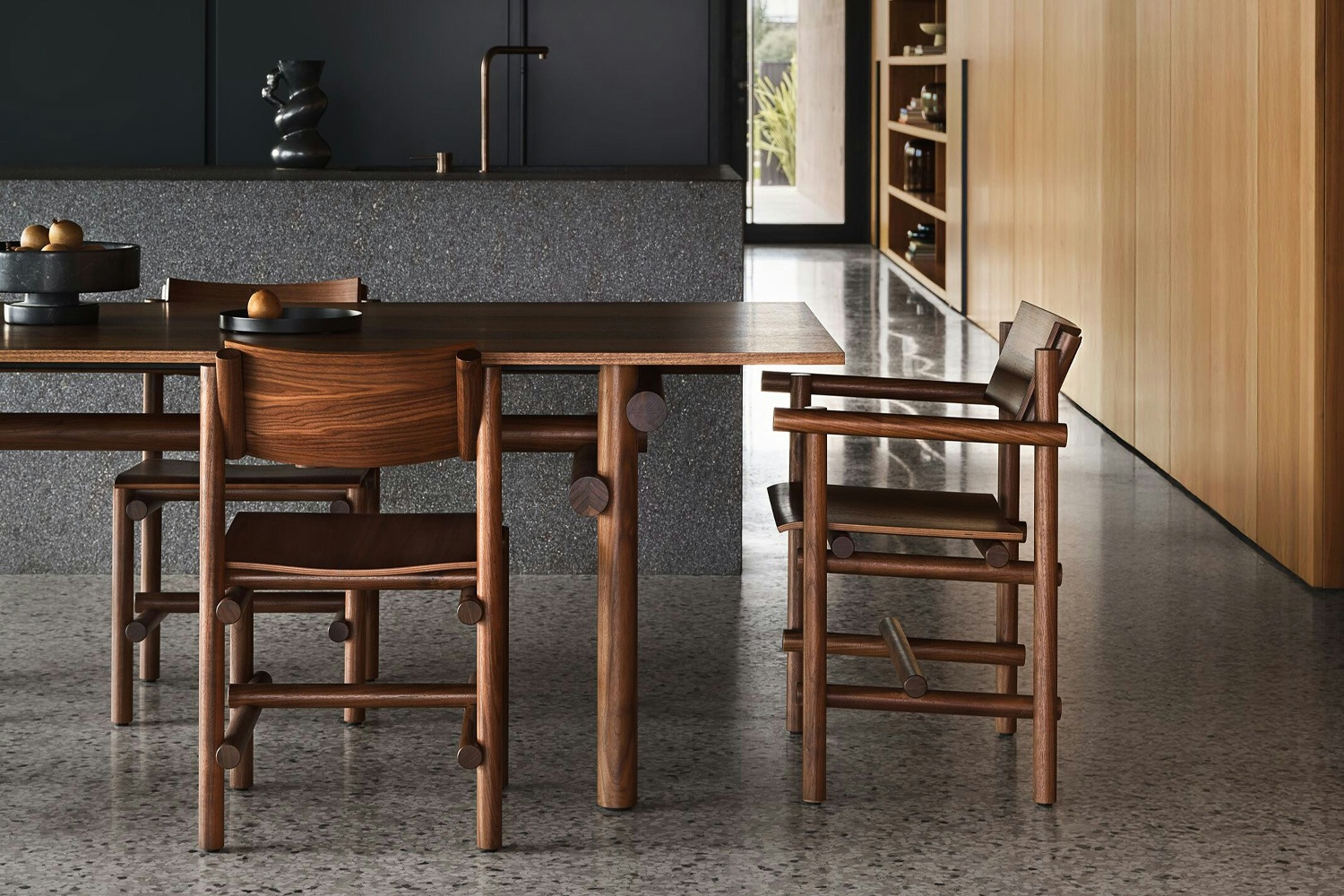 ミュークは建築家としての視点から、椅子やテーブルを単なるオブジェクトとしてではなく、空間の中での関係性として捉えています。内部に論理を持つ素材が生み出す寛容な存在感は、置かれる空間に自然に馴染みながらも、目には見えない秩序を与えます。 日常の食卓に寄り添いながら、素材と形の対話を楽しむことができるこのチェアは、見た目の美しさだけでなく、座る体験そのものを豊かにしてくれる一脚です。