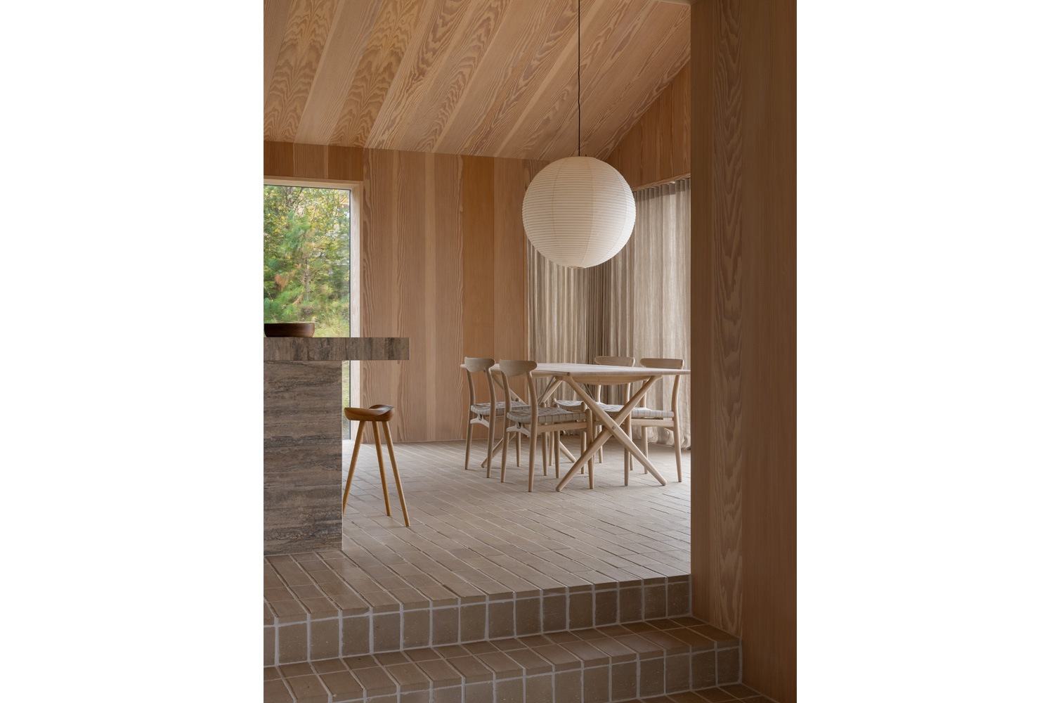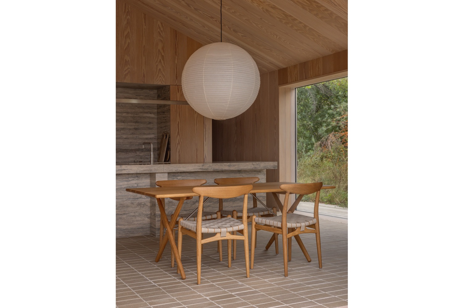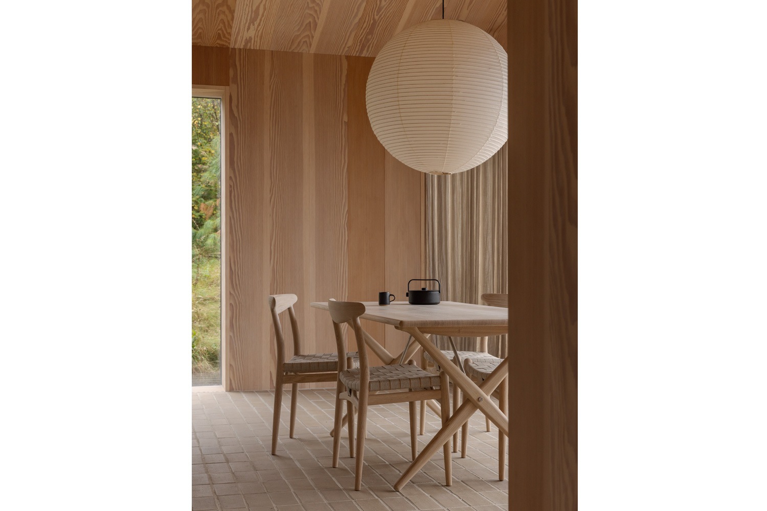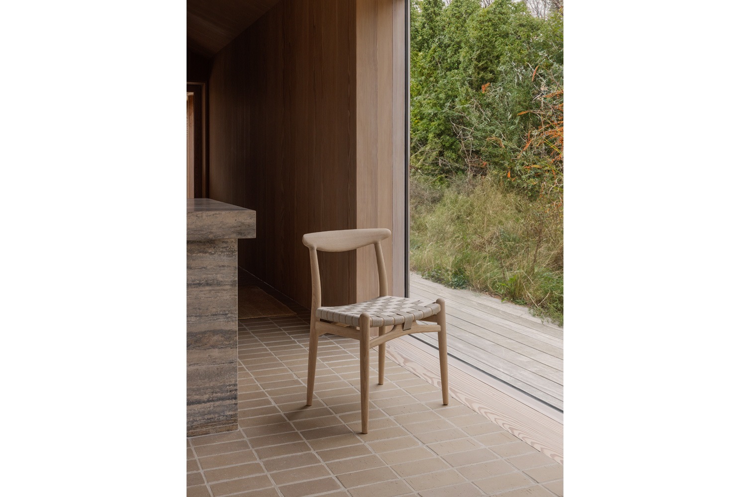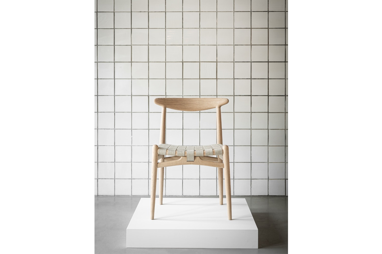 PP101チェアは、水平にカーブした背もたれや、リネンのウェビングで手織りされた座面、ウェビングの張力を維持するためにデザインされた優美なフロントレールが特徴的。ウェグナーの、プロポーションやディテールへのこだわりが見て取れます。