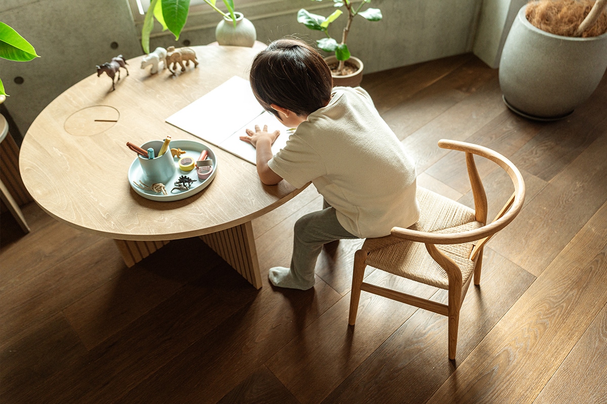 その思想は、大人用だけでなく子供用のYチェアにも静かに息づいています。